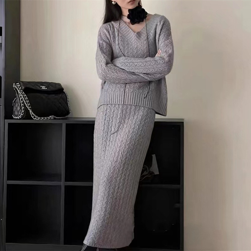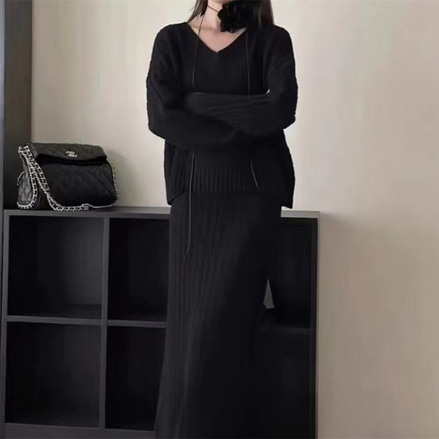 플러스 사이즈 풀오버 스웨터 여성 가방 힙합 스커트 세트 가을과 겨울 우아한 우아한 니트 스웨터 여성의 투피스 크로스 국경 세트스토어 가기