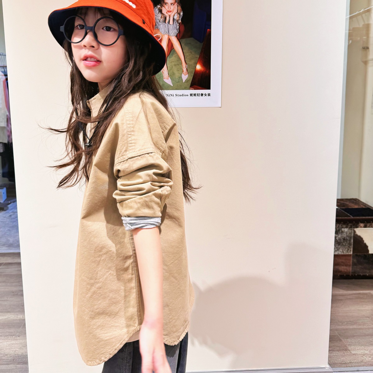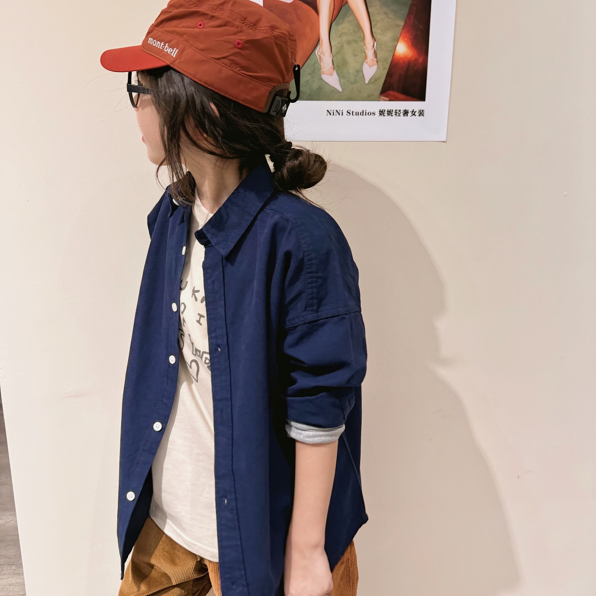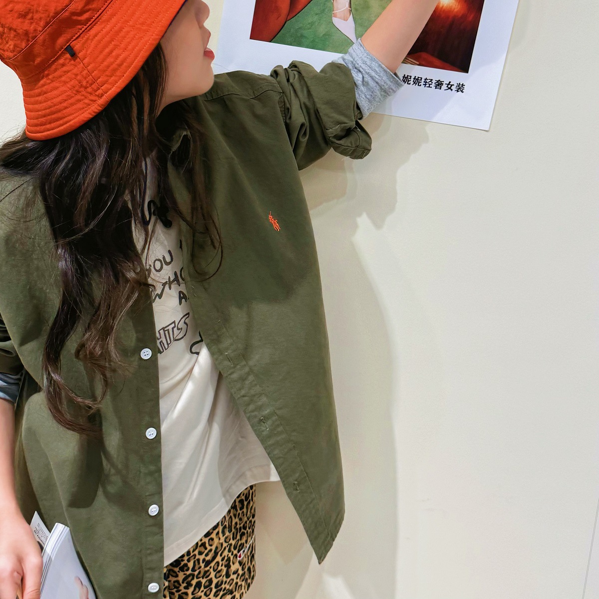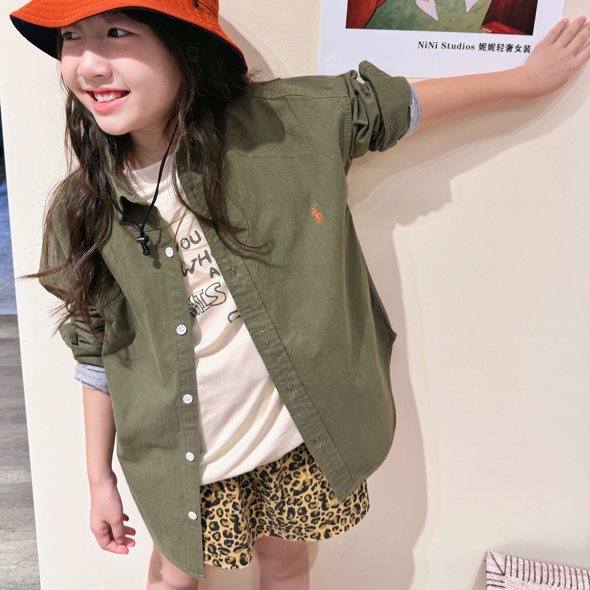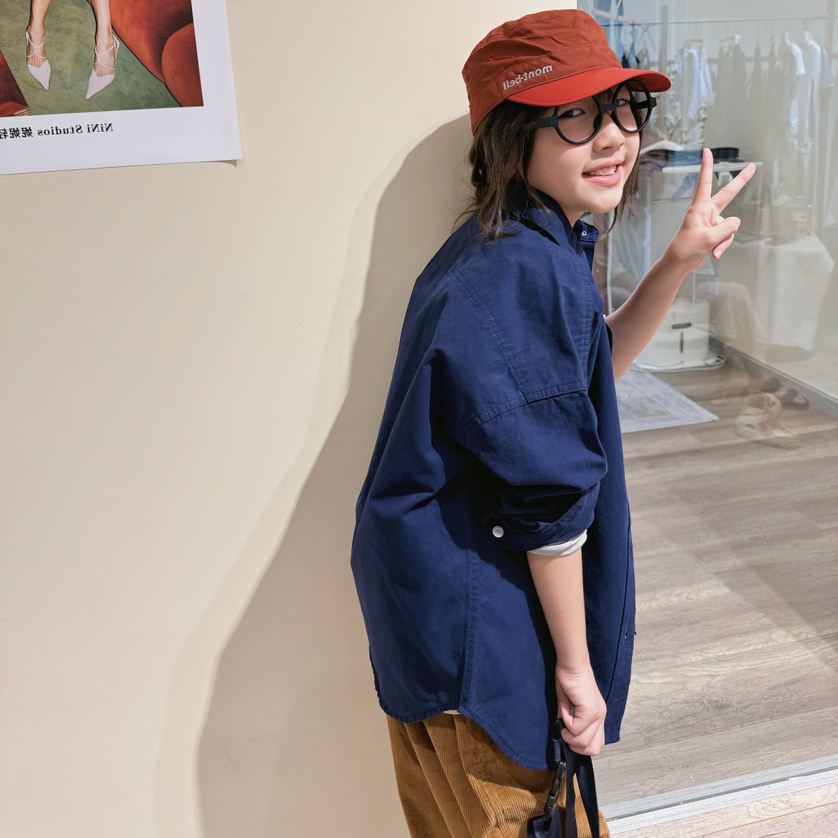 2025 가을, 겨울 어린이 올드 머니 스타일 소년과 소녀 옷깃 긴팔 자수 셔츠 탑 부모-자식 스타일스토어 가기