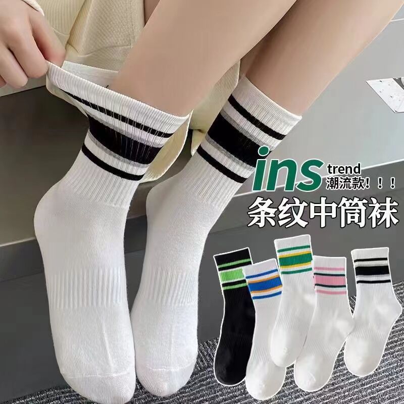 彩虹袜子女中筒袜条纹ins潮韩国男长袜春秋款涤棉长筒袜秋冬