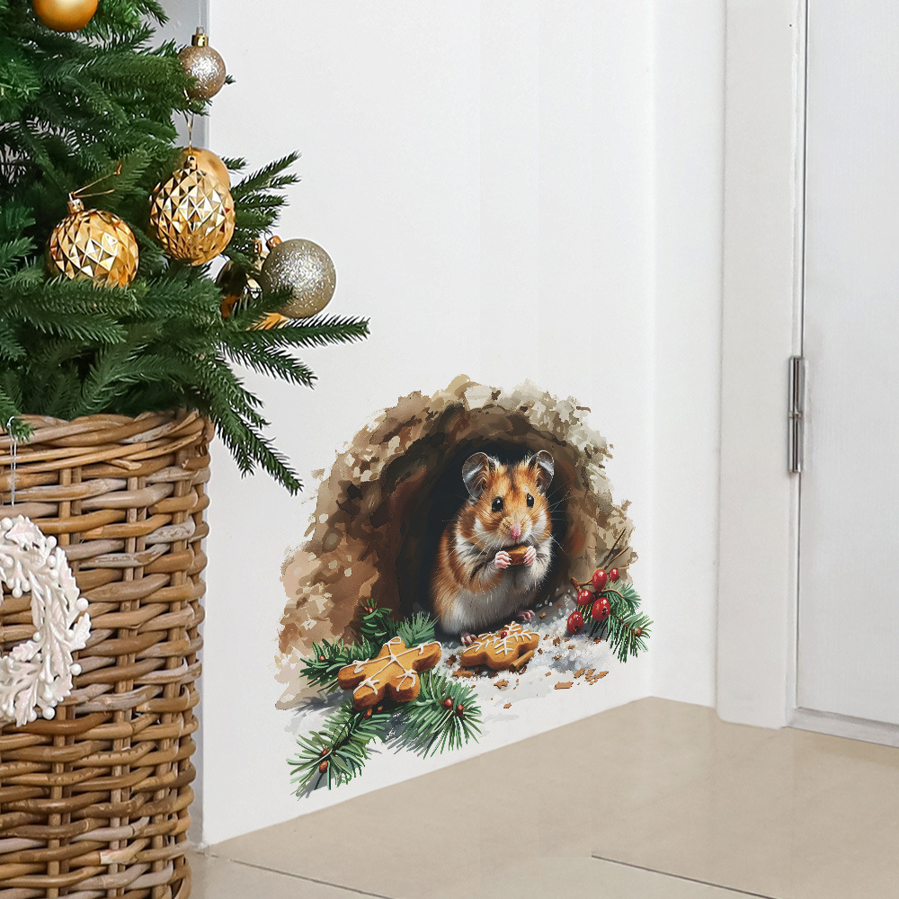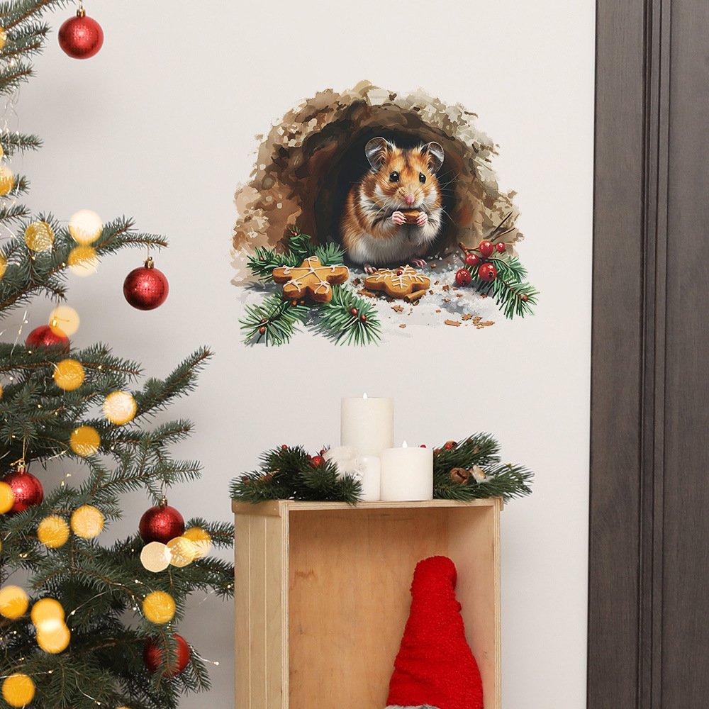 Fun-f230 구멍 다람쥐 쿠키 크리스마스 침실 거실 연구 배경 미화 벽 스티커 도매스토어 가기
