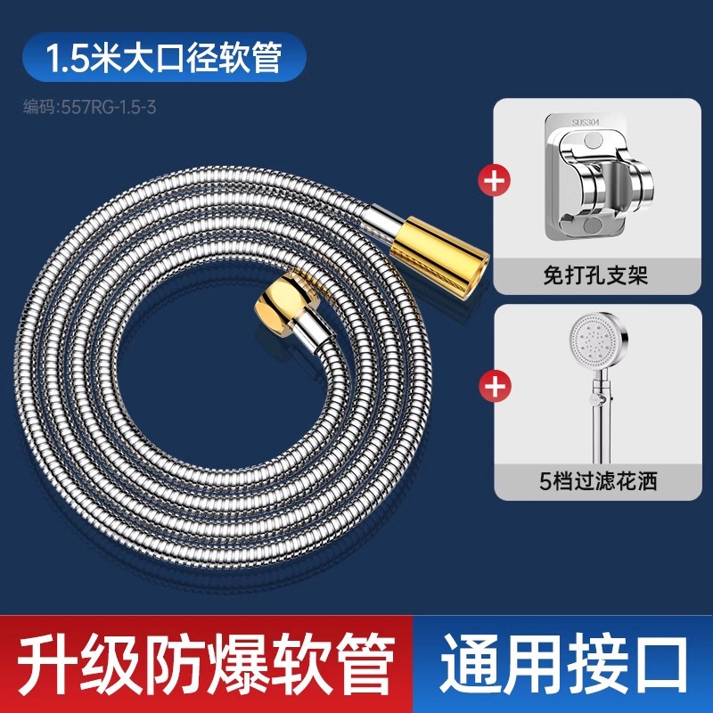 • [대구경 세트 3] 1.5m 대구경 튜브 + 펀치 프리 브래킷 + 5단 슈퍼차저 샤워기