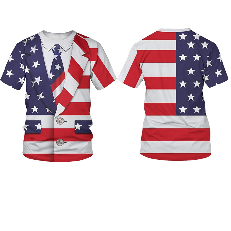AliExpress 국경 간 대외 무역 독립 일본-미국 국기 남성 패션 여름 캐주얼 반팔 라운드 넥 티셔츠 탑