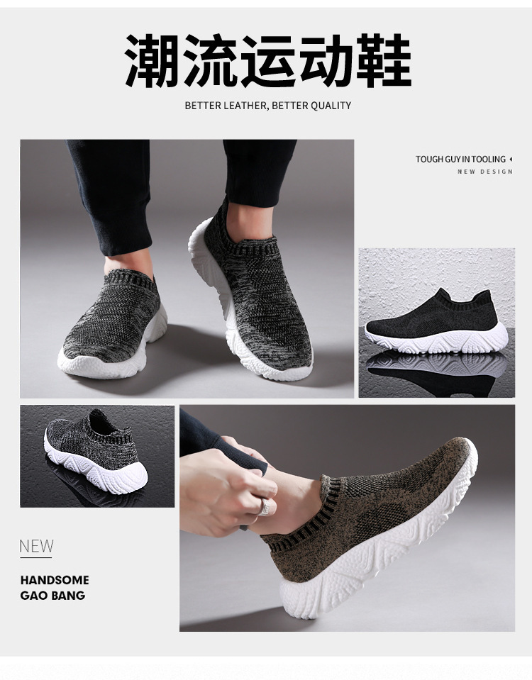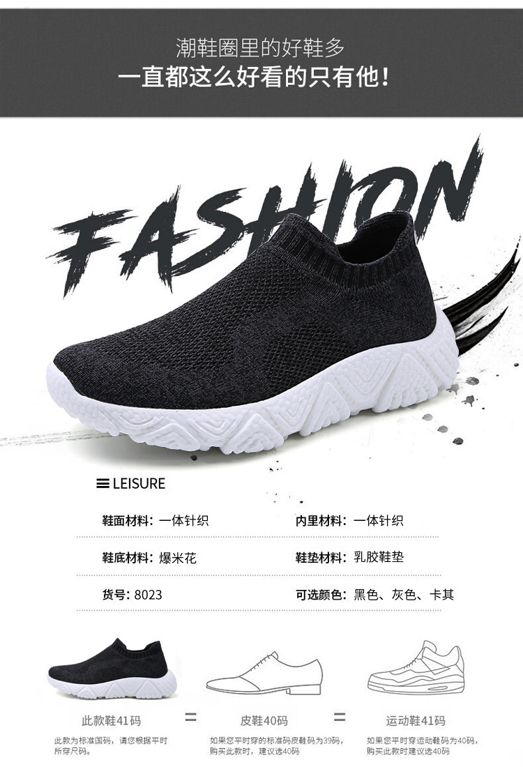 2023 국경 간 플러스 사이즈 남성 신발 팝콘 바닥 짠 메쉬 통기성 스포츠 운동화 페달 양말 남성 신발스토어 가기