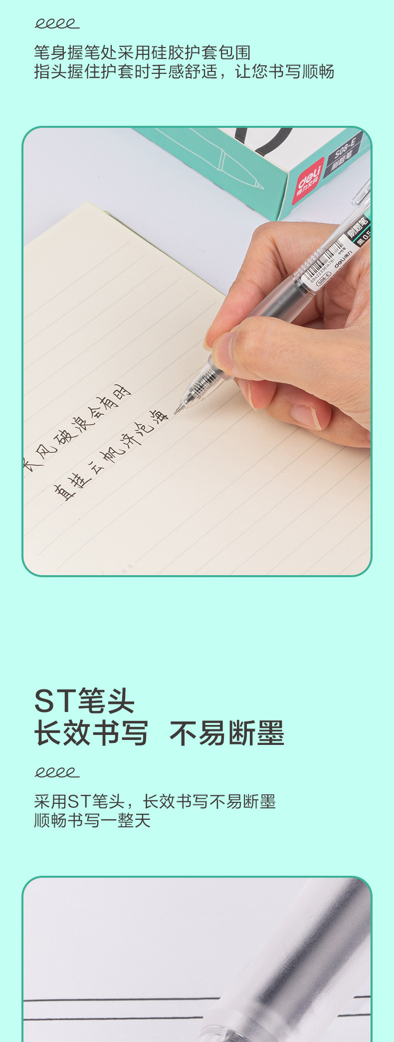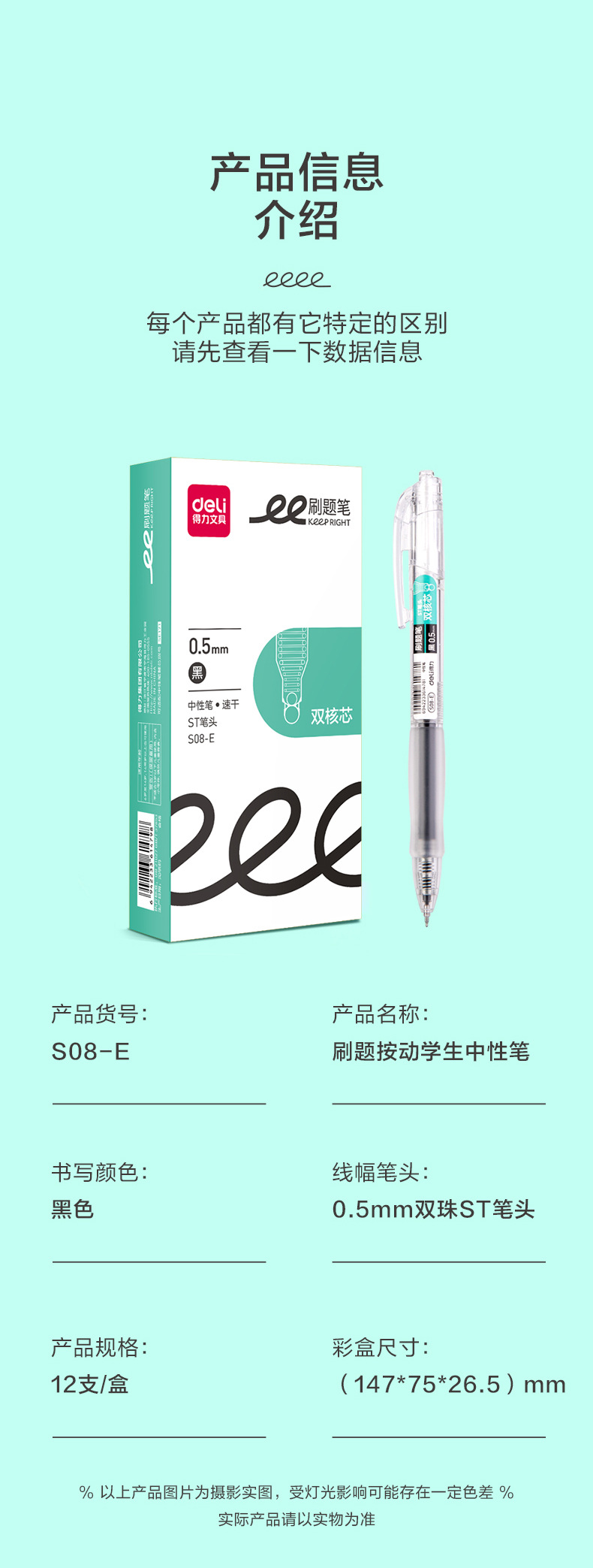 델리 듀얼 코어 프레스 젤 펜 S08-E 블랙 퀵 드라이 브러시 펜 0.5 학생 시험 젤 펜