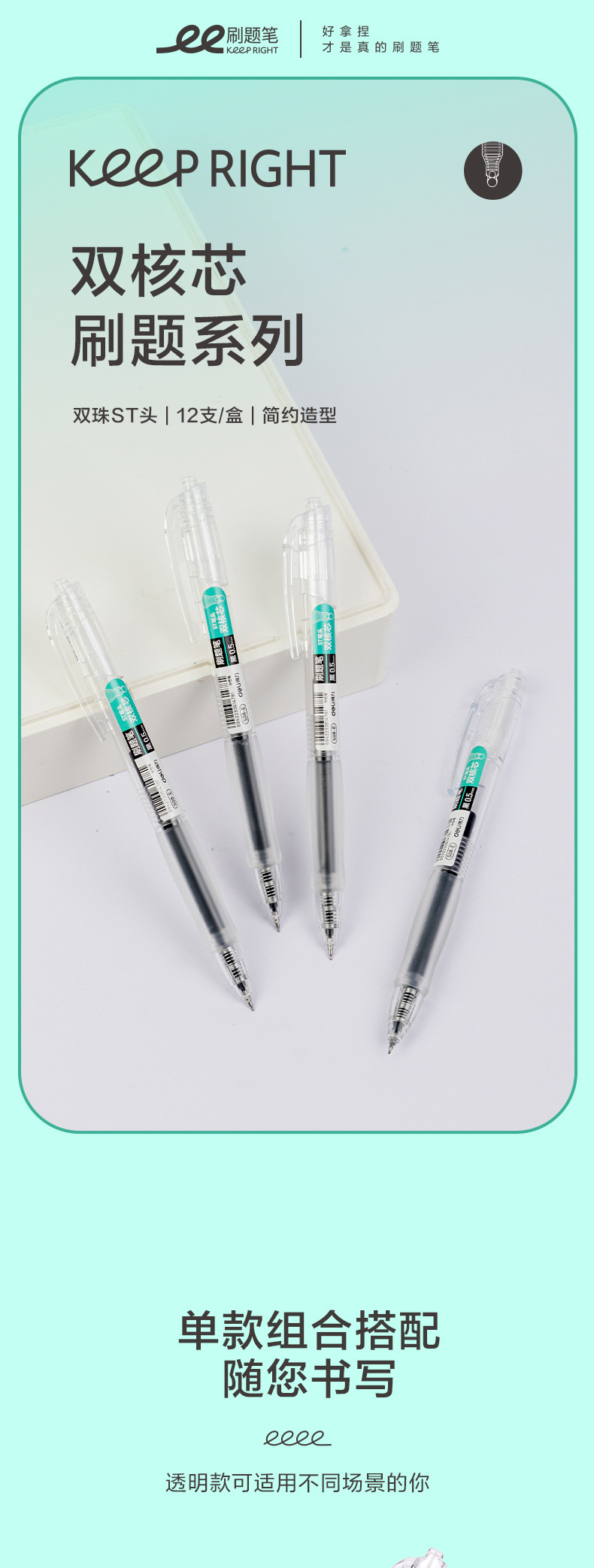 • Deli S08-E 블랙 듀얼 코어 ST 헤드 프레스 젤 펜 [투명 막대]