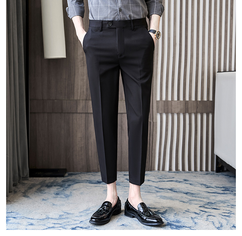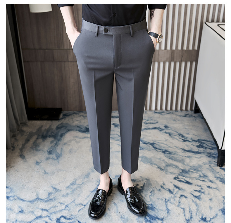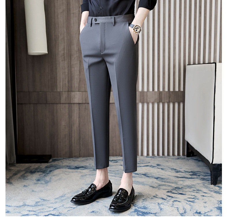 여름 유행 캐주얼 세트 바지 남성 비즈니스 9 점 바지 한국 스타일 슬림 핏 타이드 스트레이트 바지 얇은스토어 가기