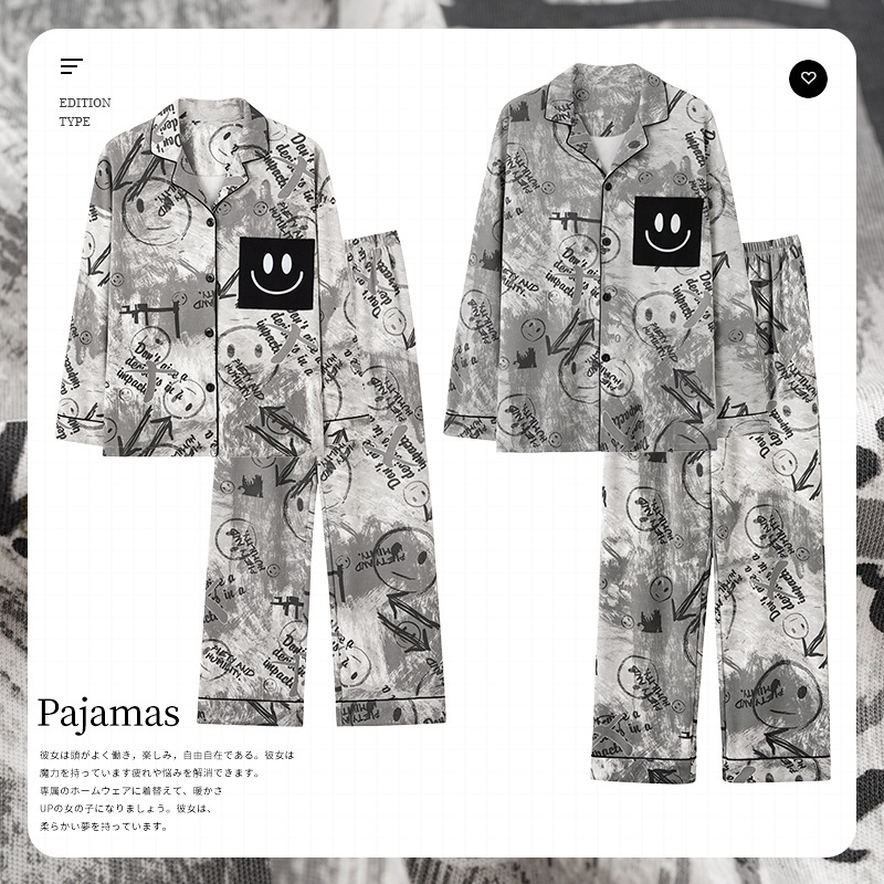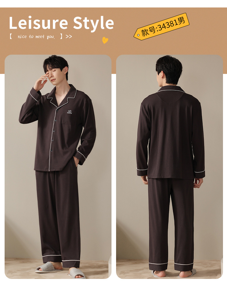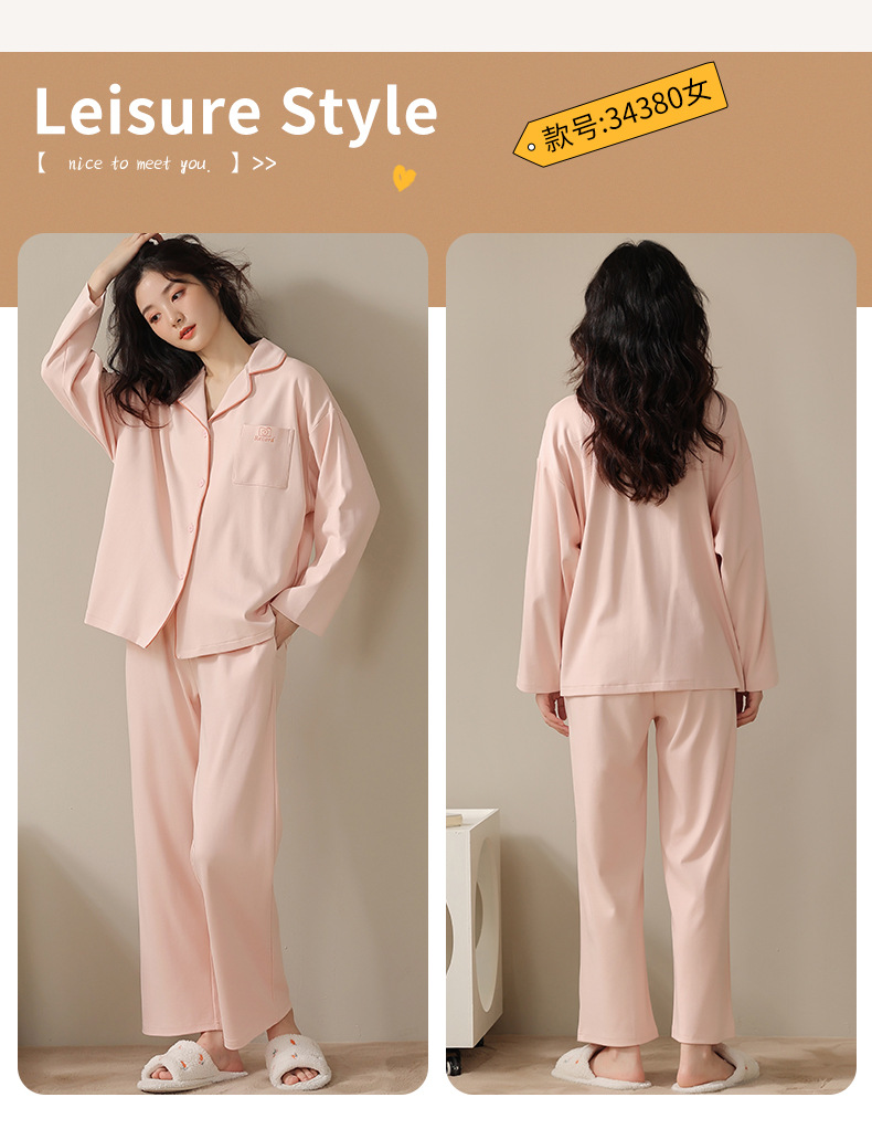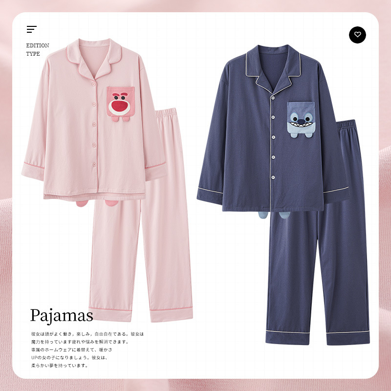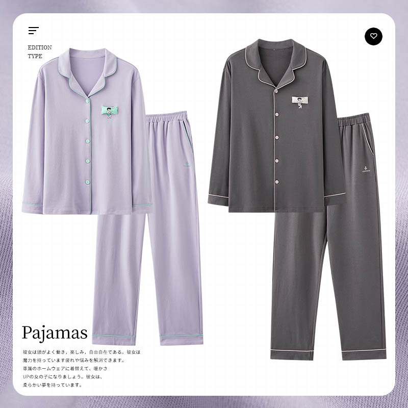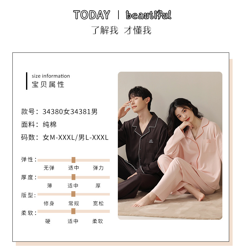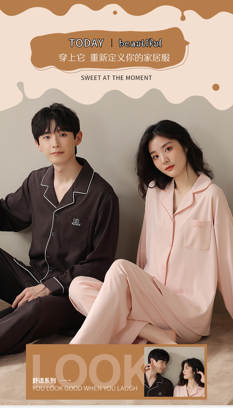 2024 새로운 커플 잠옷 여성용 니트 코튼 긴 소매 옷깃 세트 간단한 고급 남성 봄과 가을 가정 옷스토어 가기