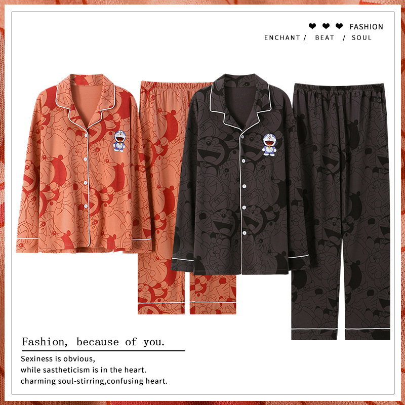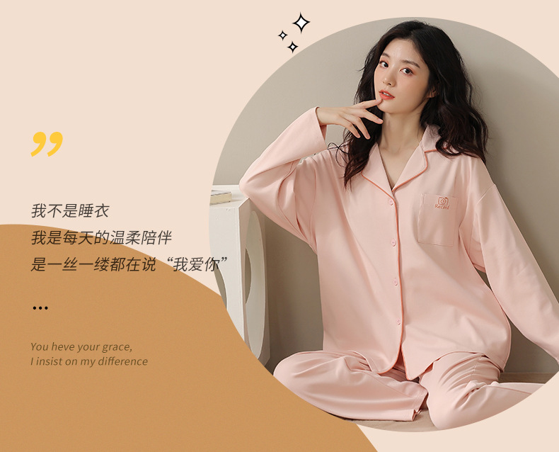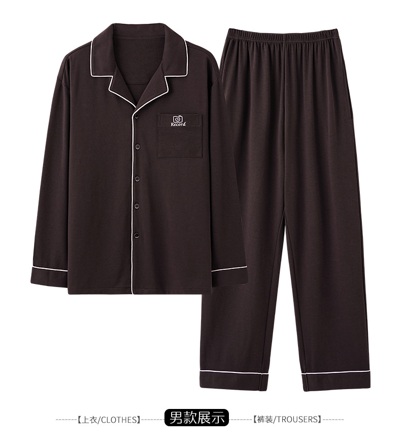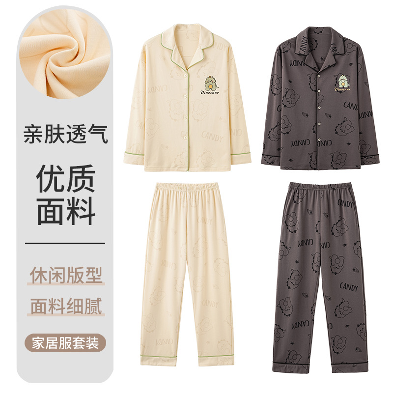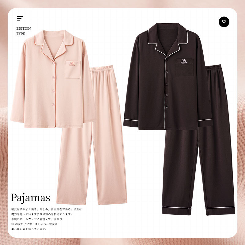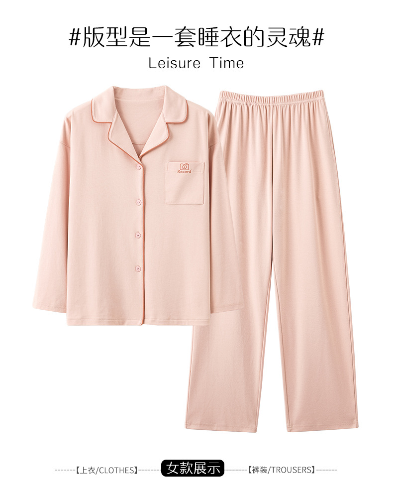 2024 새로운 커플 잠옷 여성용 니트 코튼 긴 소매 옷깃 세트 간단한 고급 남성 봄과 가을 가정 옷