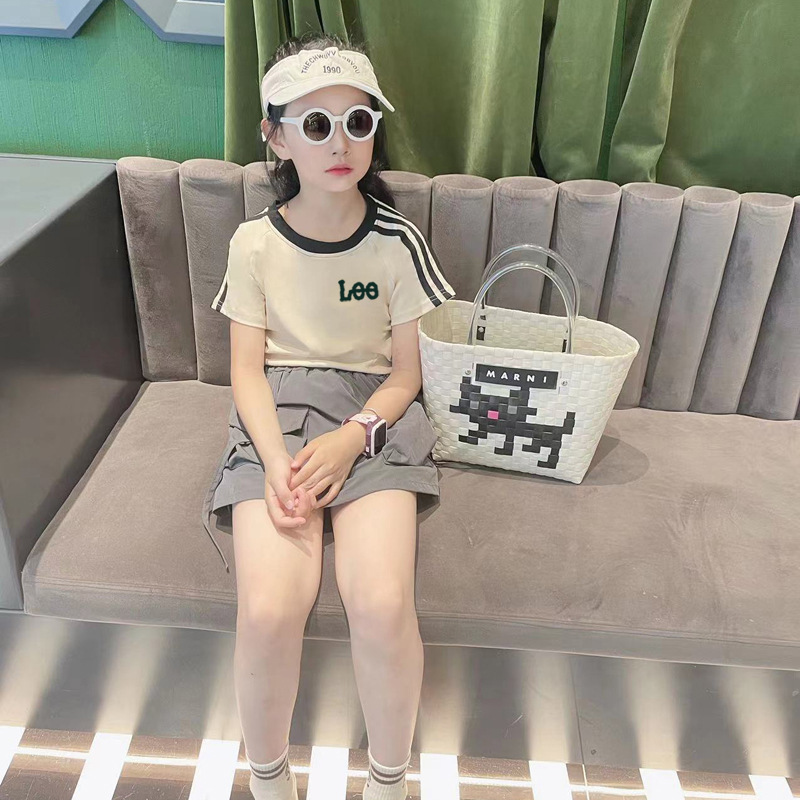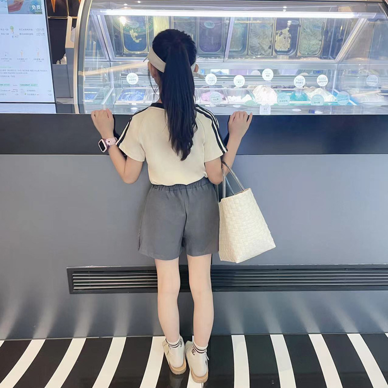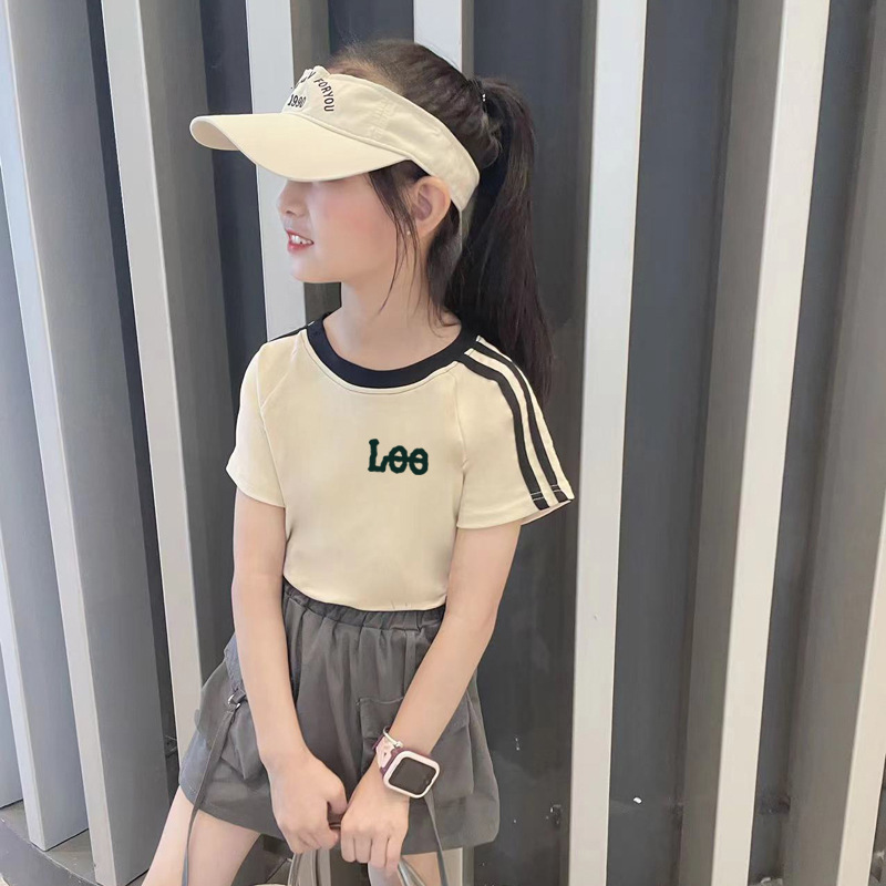 크로스 보더 걸스 코튼 반팔 탑 슬림 핏 여름 원피스 어린이 서양식 소녀 아기의 3 바 얇은 티셔츠스토어 가기