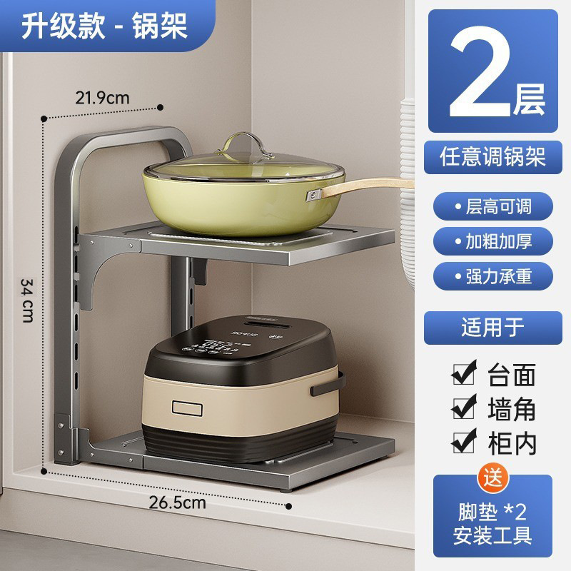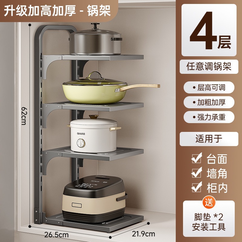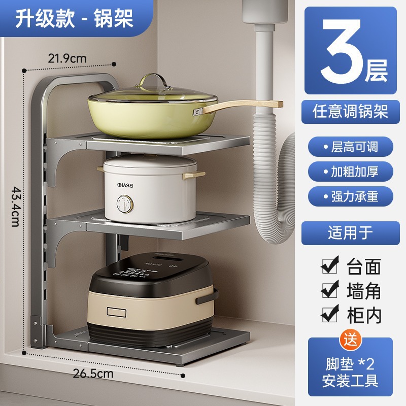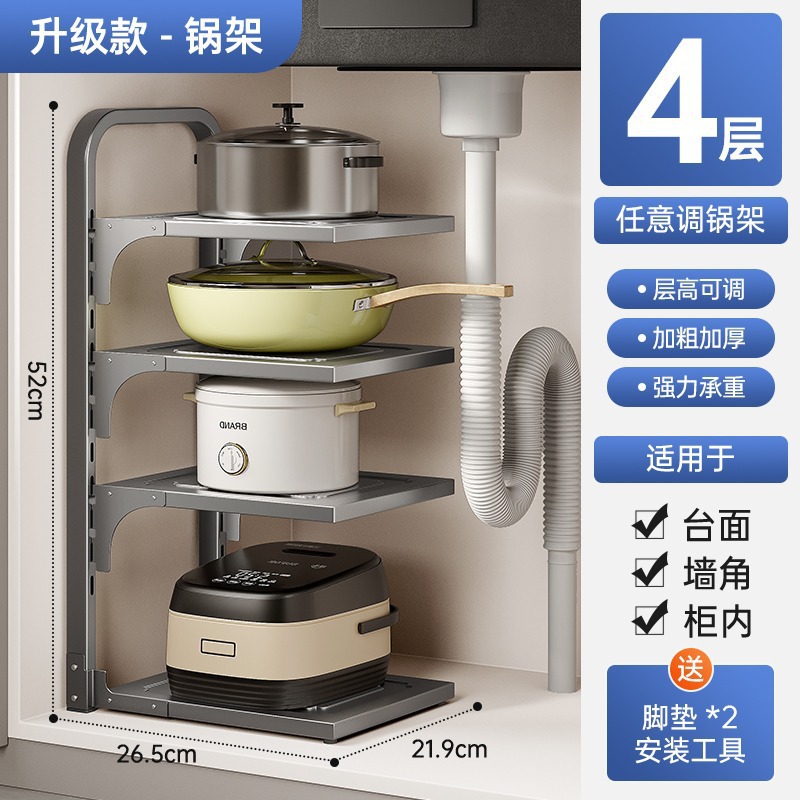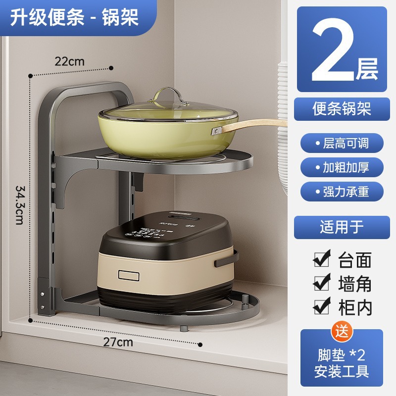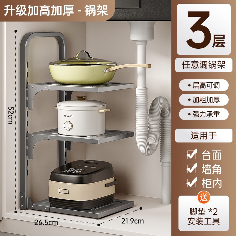 주방 다층 저장 랙 가정용 다기능 캐비닛 싱크 쿠커 탄소 강철 레이어 냄비 랙 저장 랙