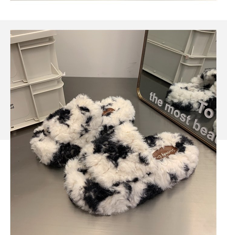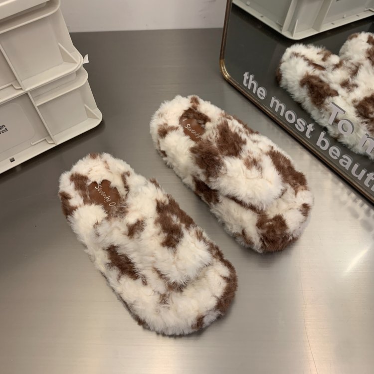 암소 따뜻한 올매치 홈 와이드 두꺼운 밑창 마오 슬리퍼 여자 2024 가을 겨울 게으른 사람들의 그물 빨간 면 슬리퍼