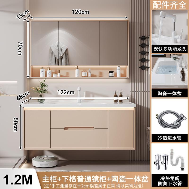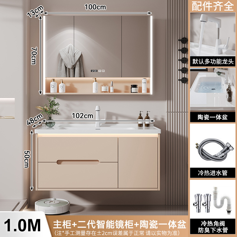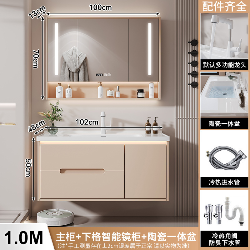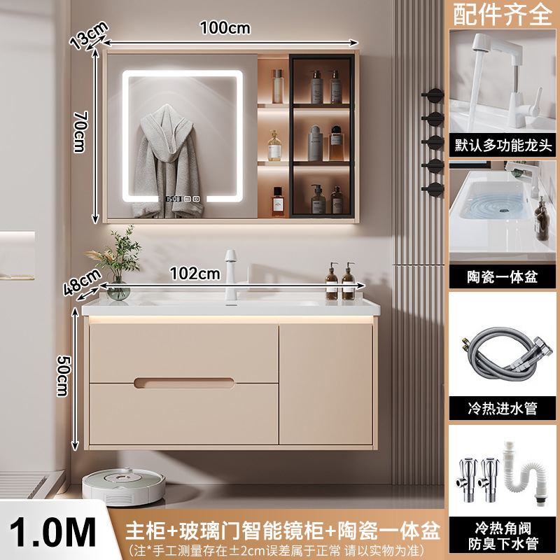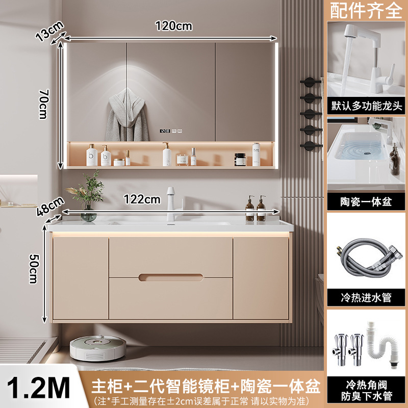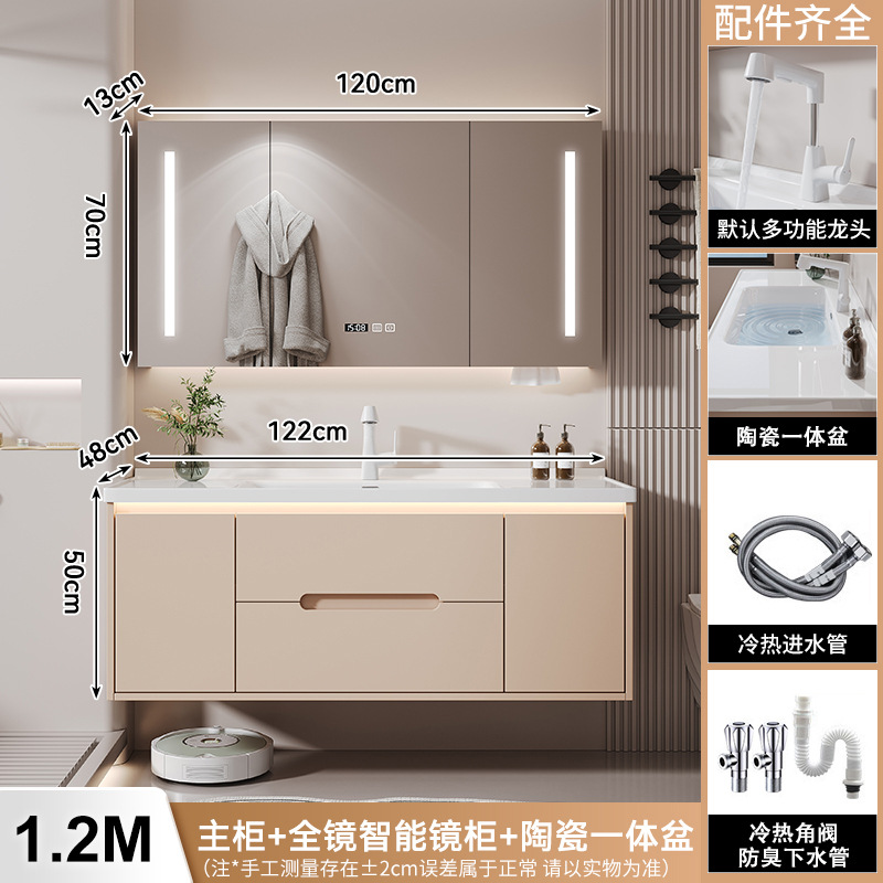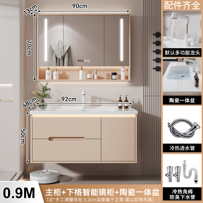 새 크림 에어 욕실 캐비닛 조합 욕실 세라믹 올인원 분지 지능형 솔리드 우드 세척 테이블 세면대