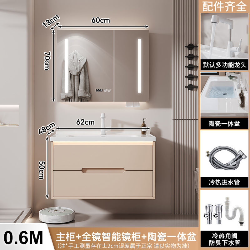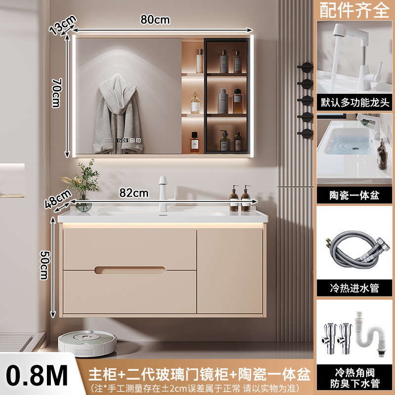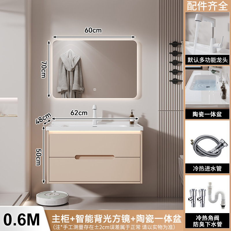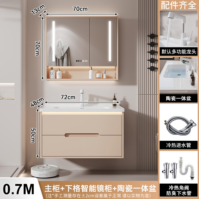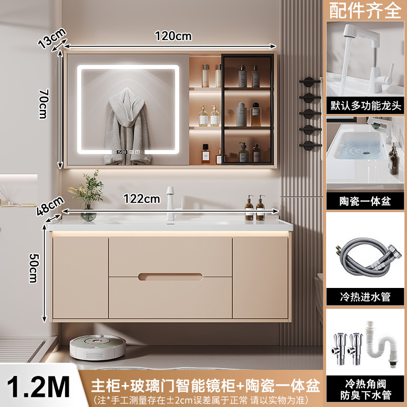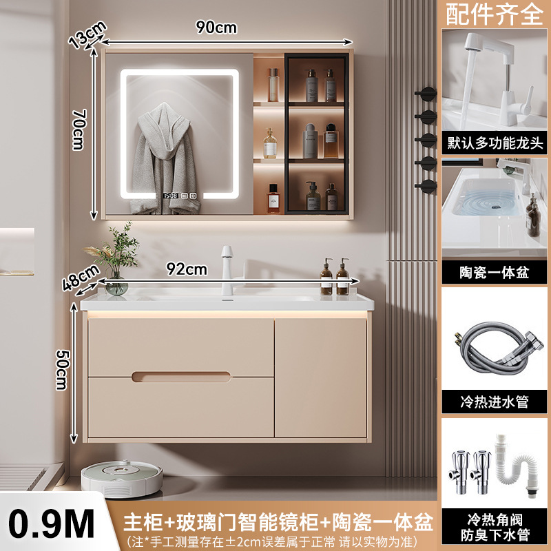 새 크림 에어 욕실 캐비닛 조합 욕실 세라믹 올인원 분지 지능형 솔리드 우드 세척 테이블 세면대스토어 가기