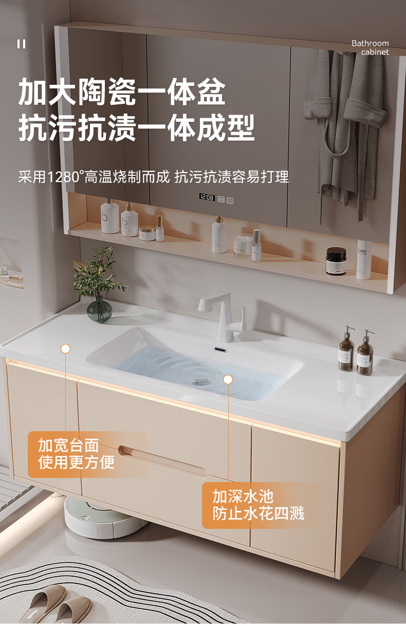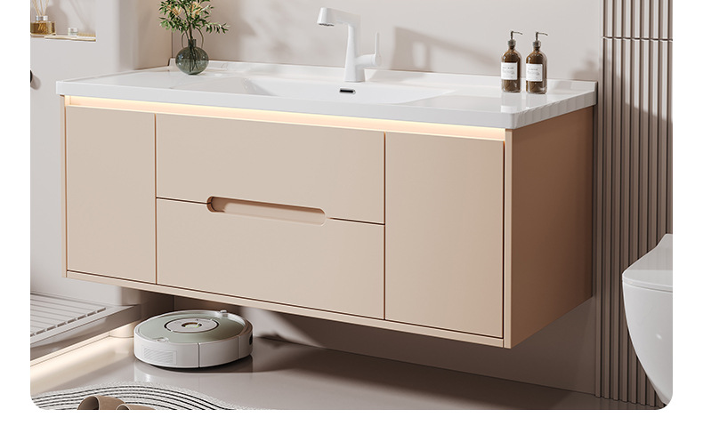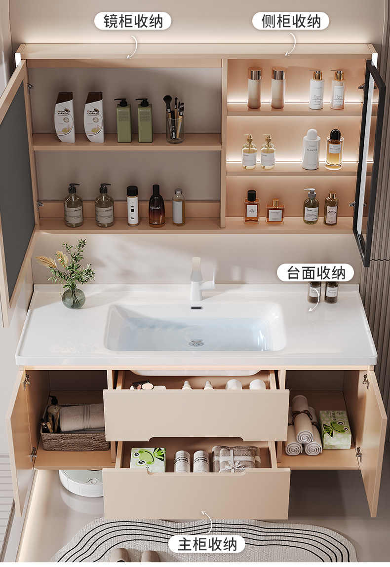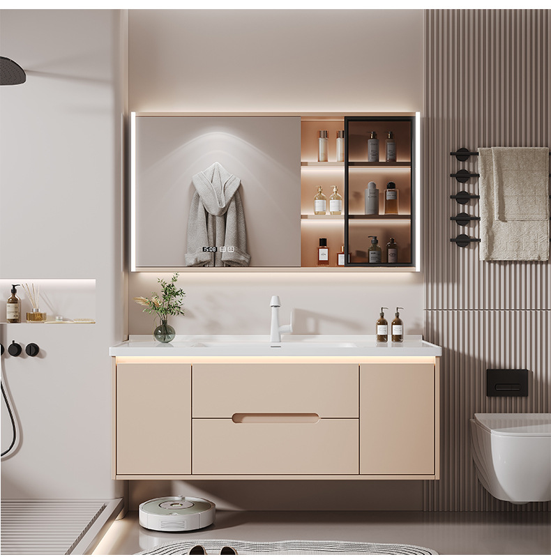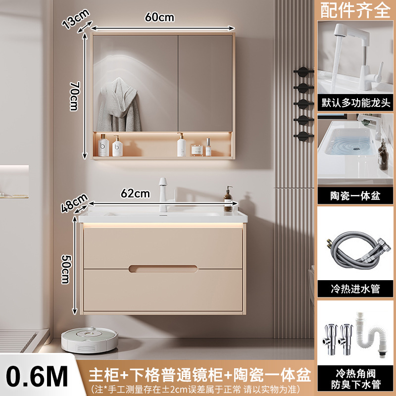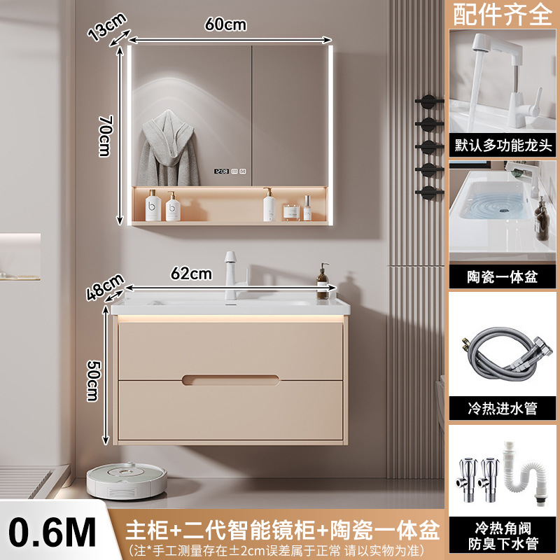 새 크림 에어 욕실 캐비닛 조합 욕실 세라믹 올인원 분지 지능형 솔리드 우드 세척 테이블 세면대스토어 가기