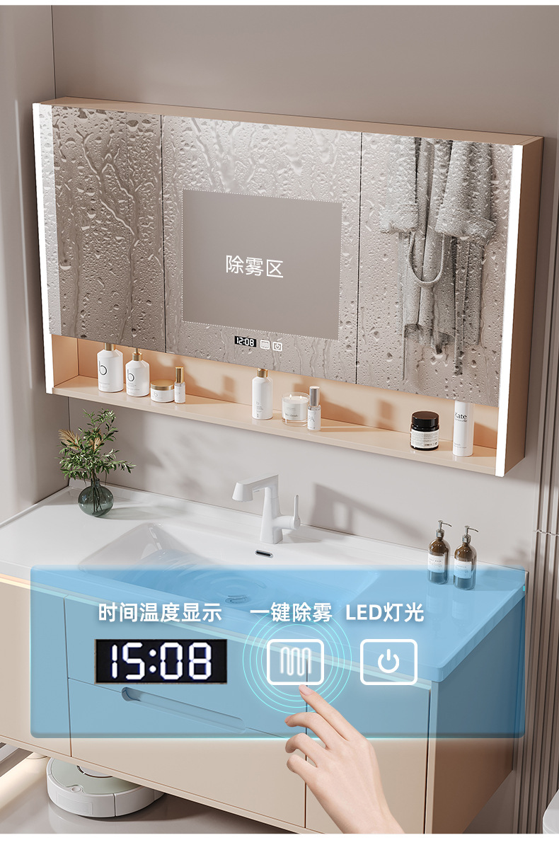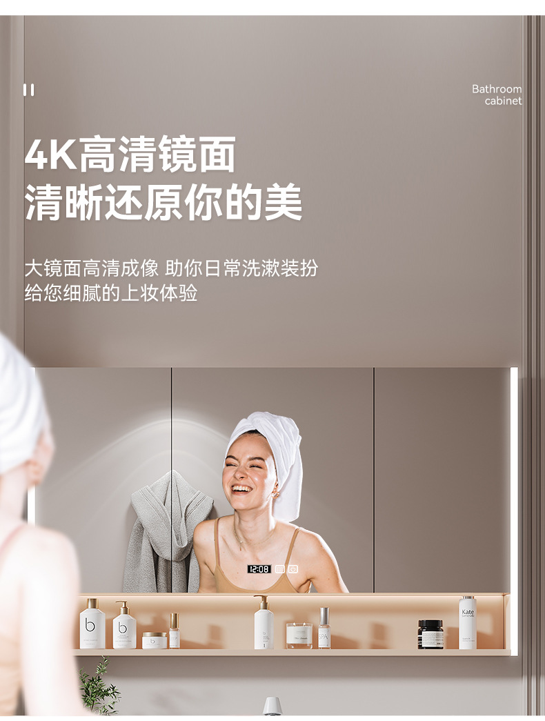 • T112-80 크림 스타일 포괄적인 스마트 거울 캐비닛 인체 센서 조명