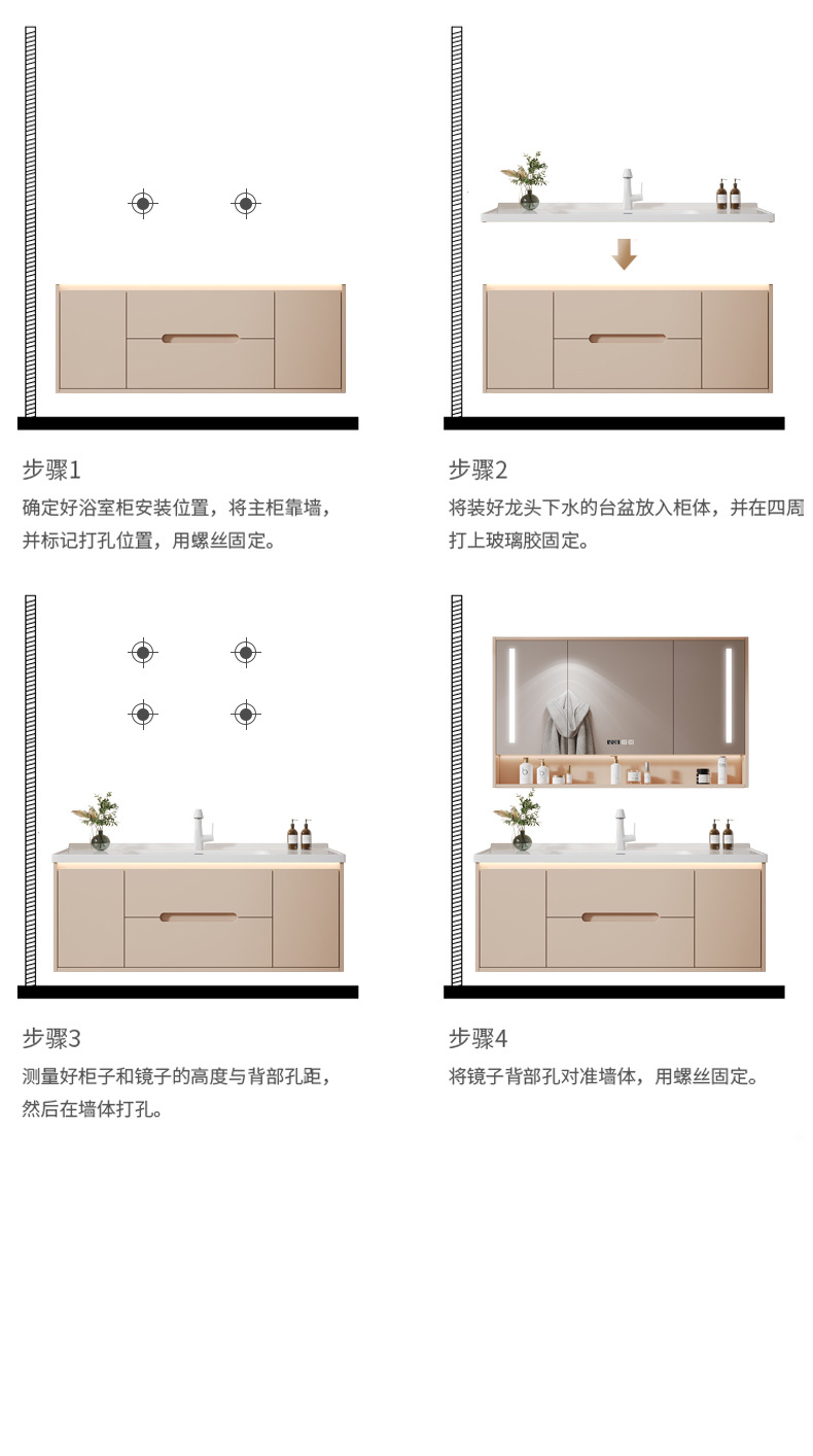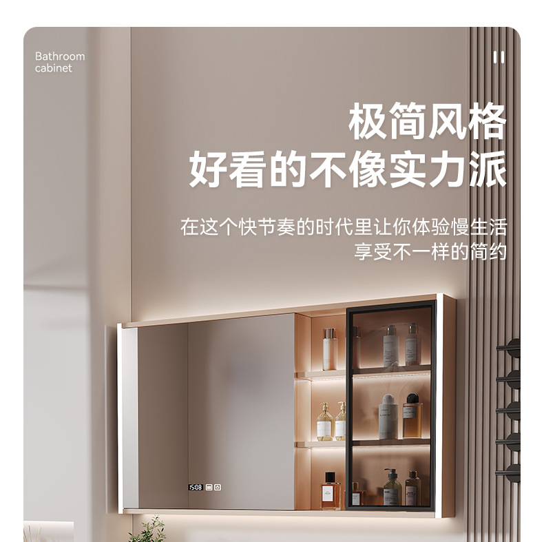 • T112-80 크림 바람 유리 도어 거울 캐비닛 인체 센서 조명