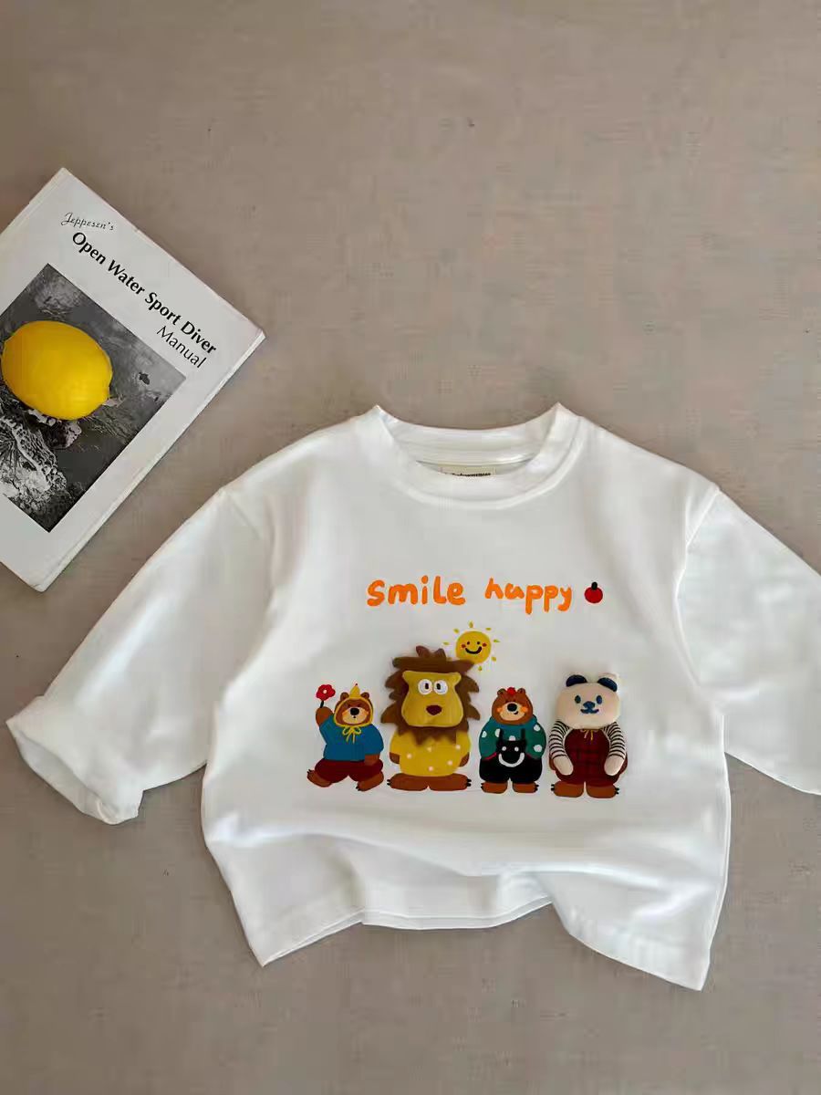 어린이 티셔츠 소년 긴 소매 2024 가을 새로운 어린이 동물 탑 아기 만화베이스 셔츠 여성의 서양식스토어 가기