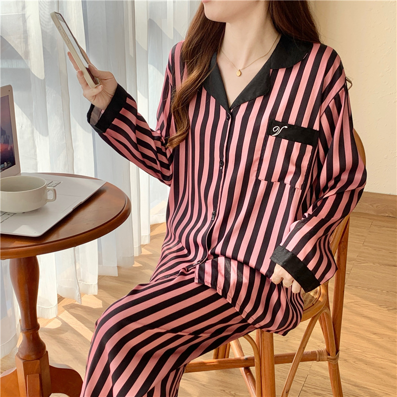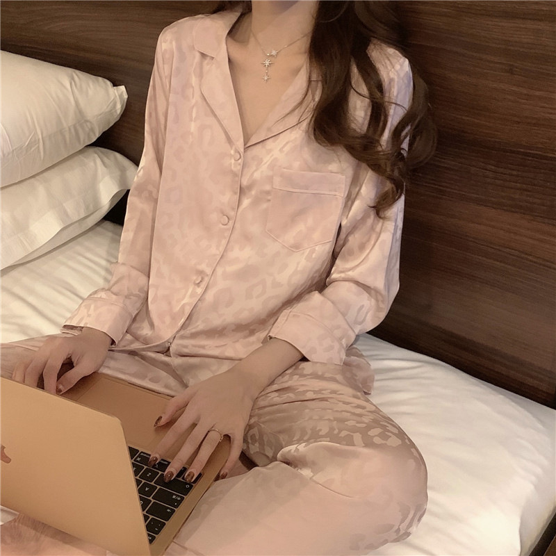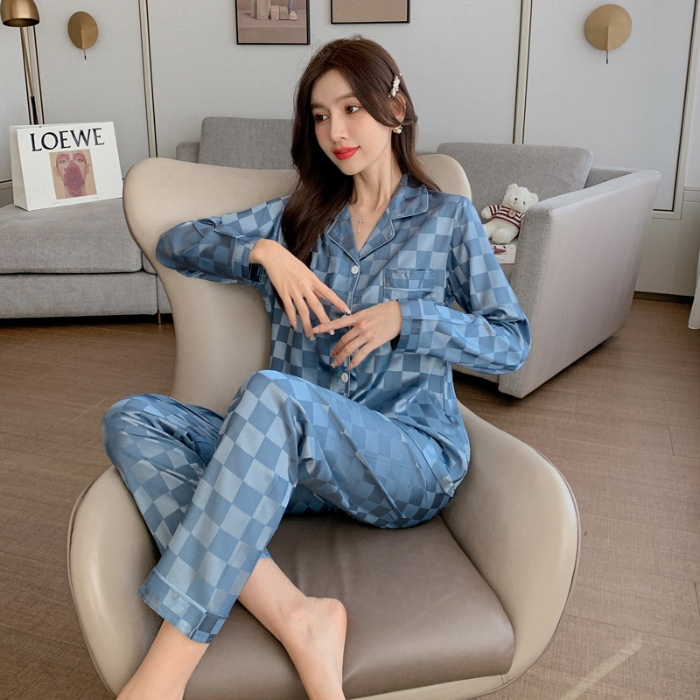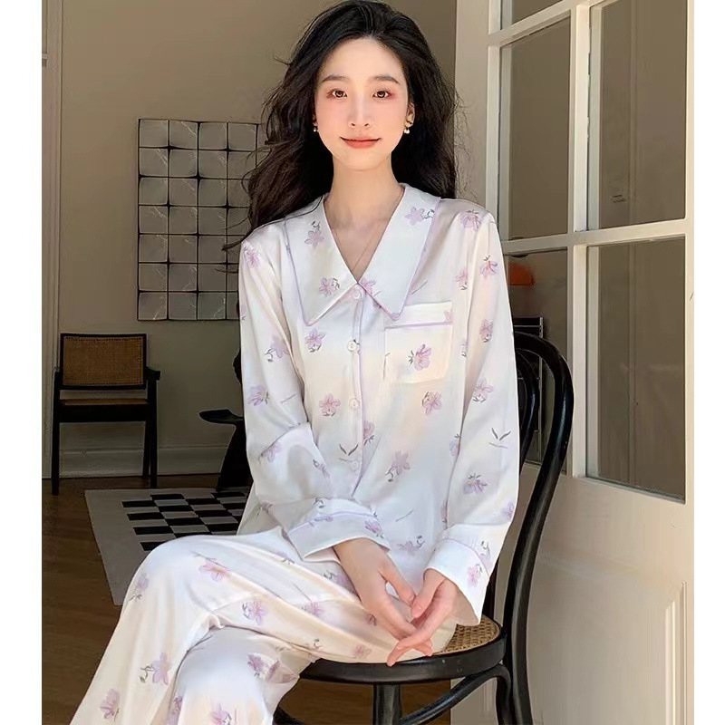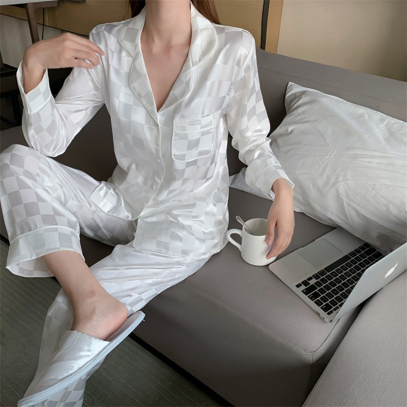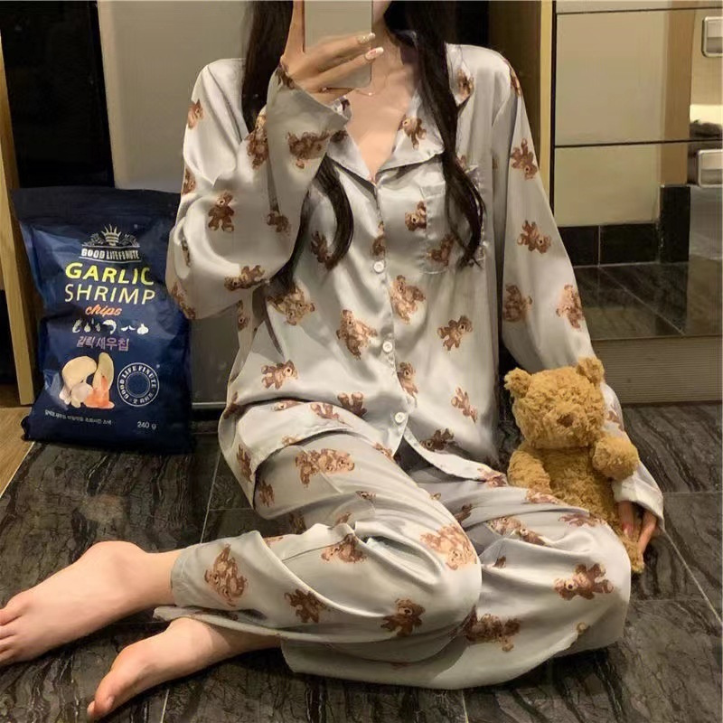공장 직접 2024 새로운 잠옷 여성 모조 실크 세트 봄과 가을에 바람 세트 V 칼라를 배포 할 수 있습니다 도매