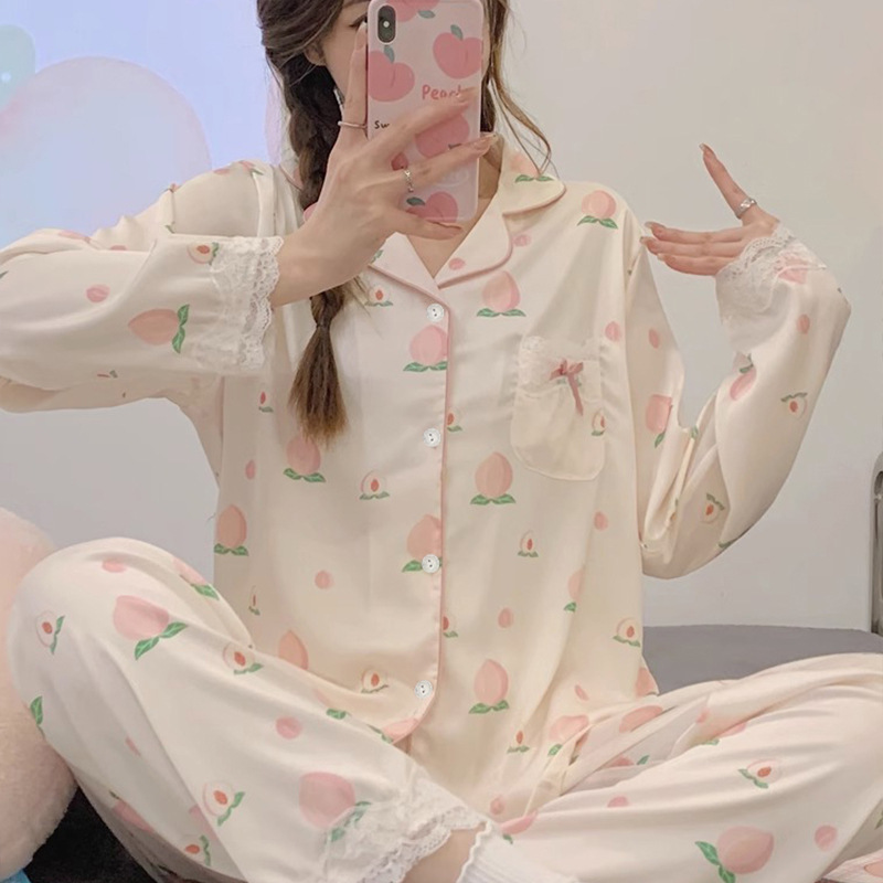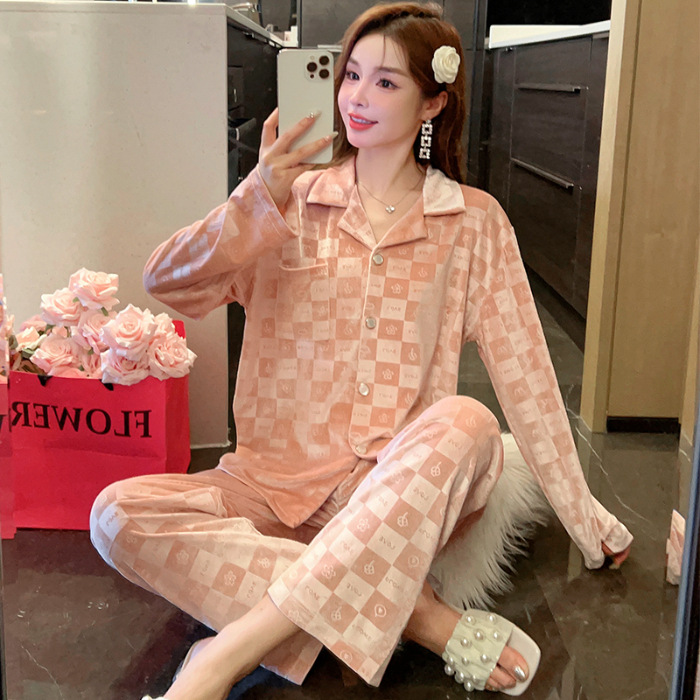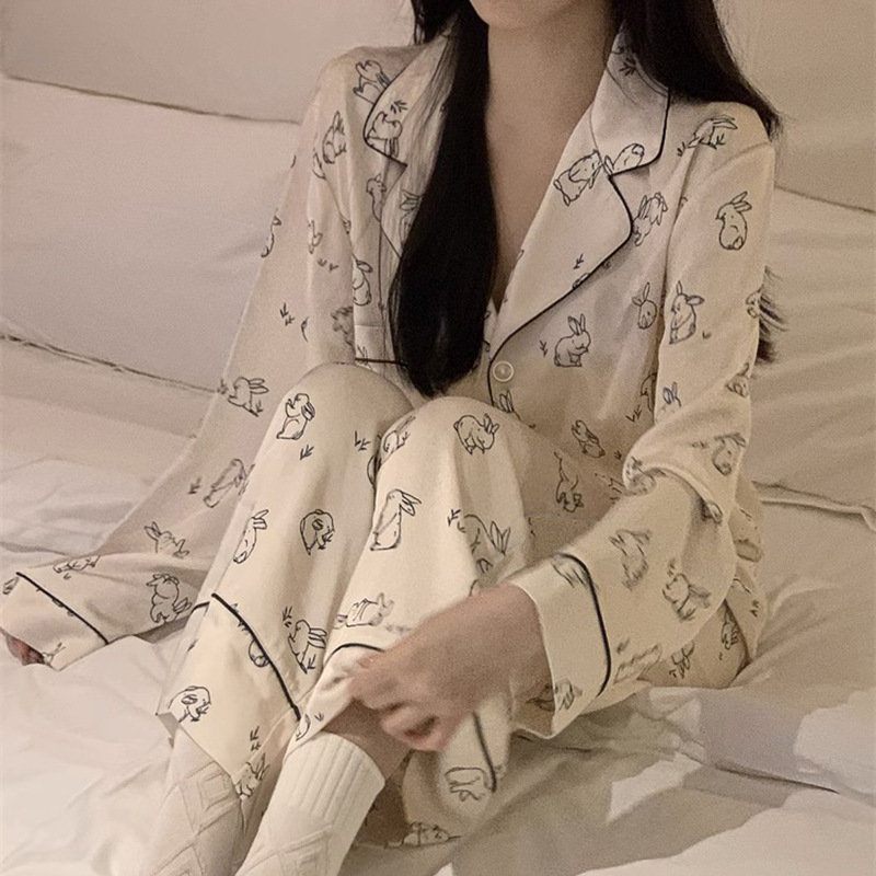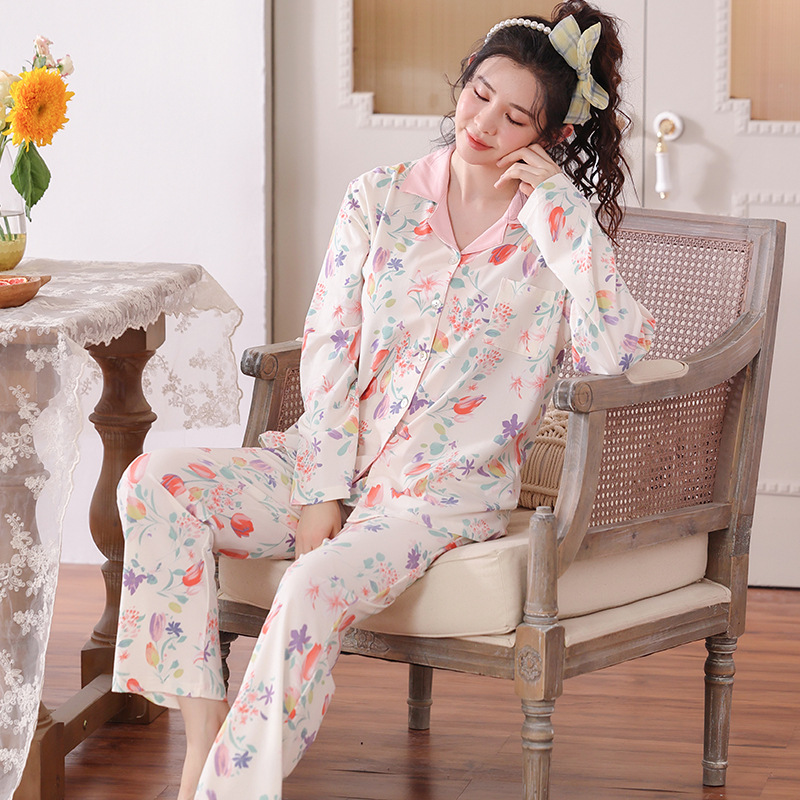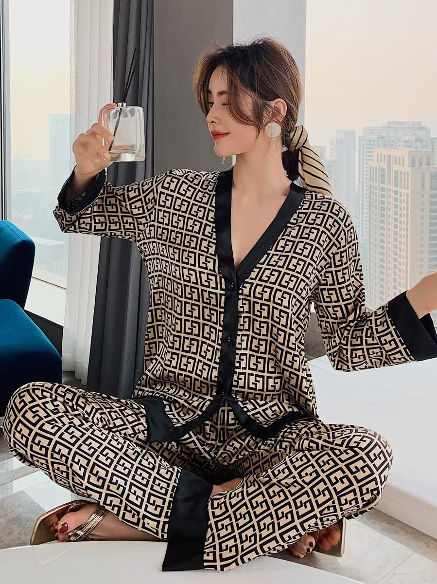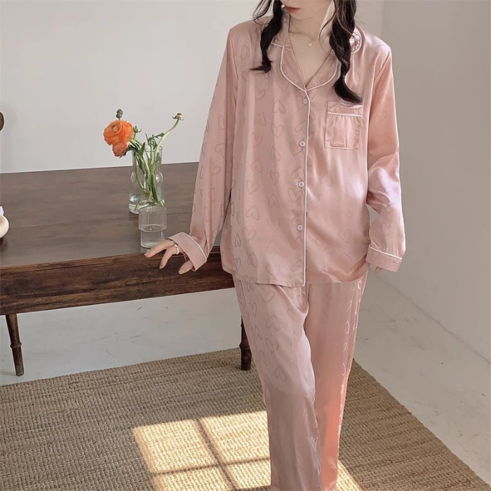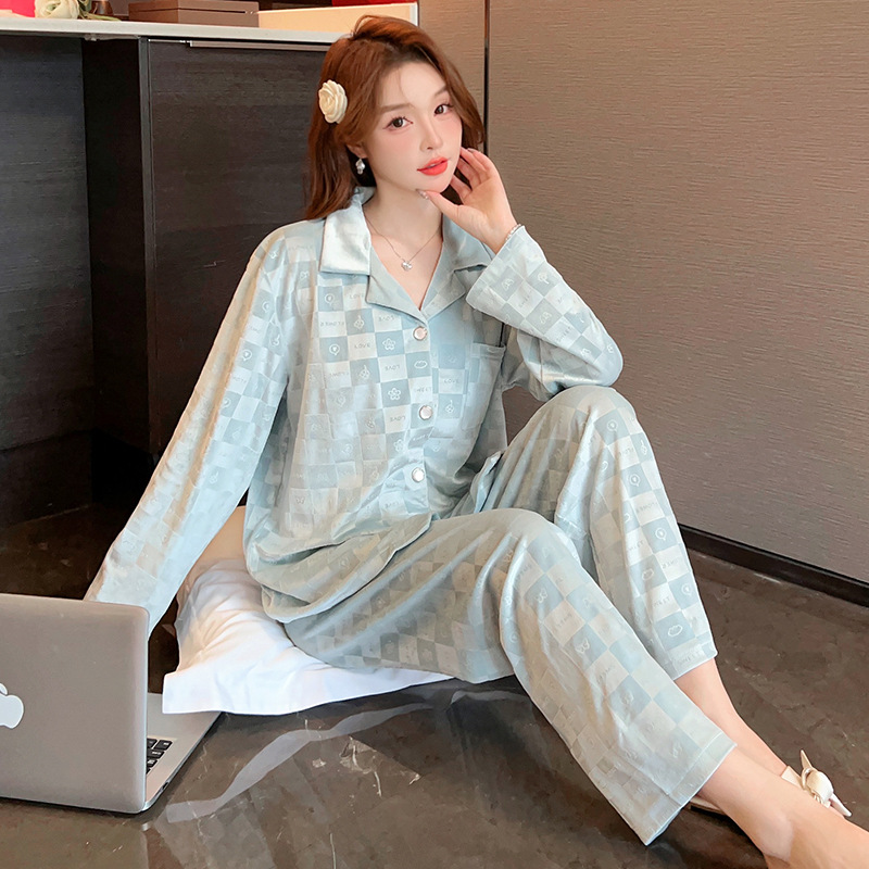 공장 직접 2024 새로운 잠옷 여성 모조 실크 세트 봄과 가을에 바람 세트 V 칼라를 배포 할 수 있습니다 도매