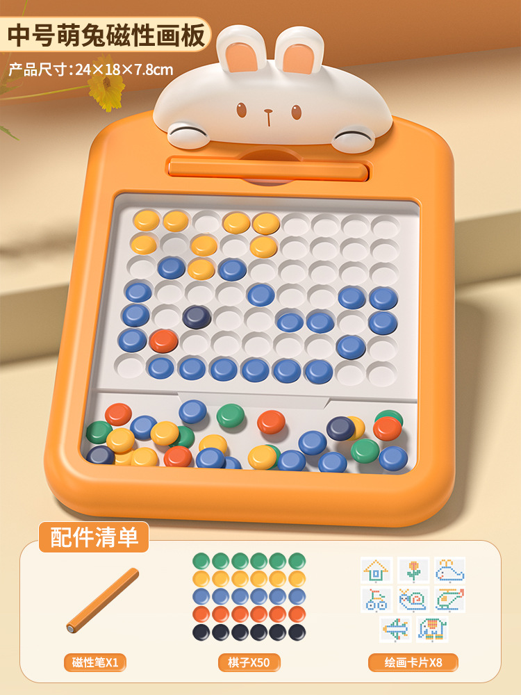 • 중형 [귀여운 토끼 자석 펜 드로잉 보드]에는 체스 말 50개 + 국산 패턴 카드 16개 + 펜 1개가 포함되어 있습니다.