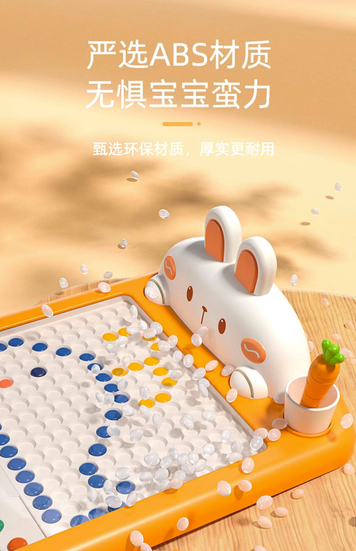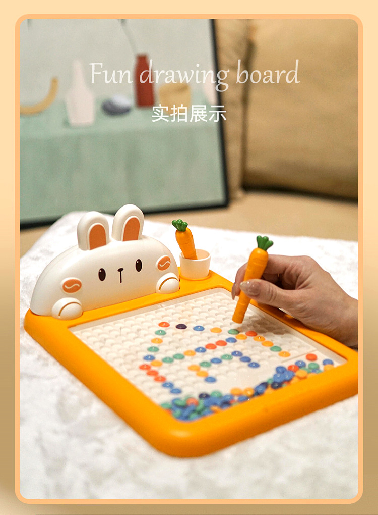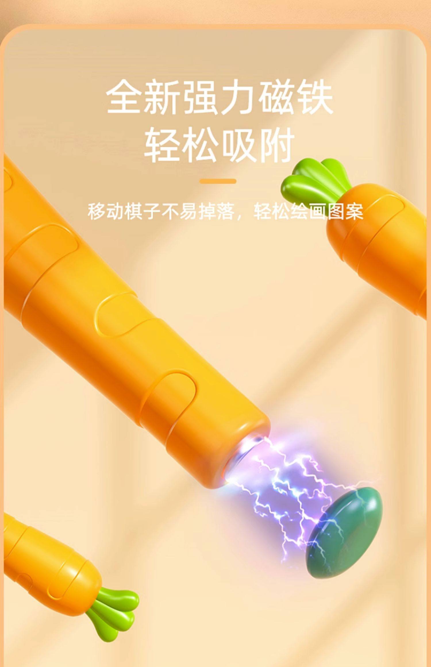 • 대형 [귀여운 토끼 자석 펜 드로잉 보드]에는 체스 말 70개 + 국산 패턴 카드 20개 + 펜 2개가 포함되어 있습니다.