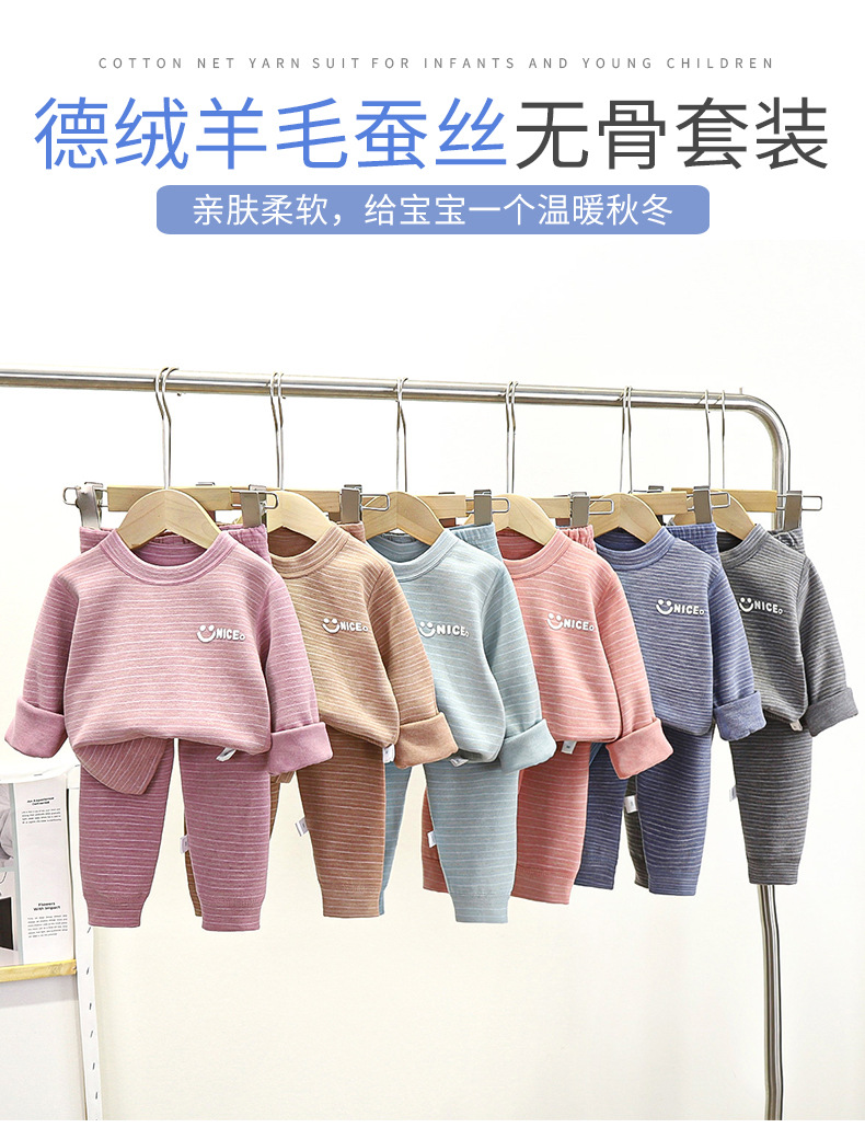 새로운 개발 가을 옷과 바지 따뜻한 가정 옷 중소 및 대형 어린이 세트 어린이 열 속옷 세트 봄과 가을