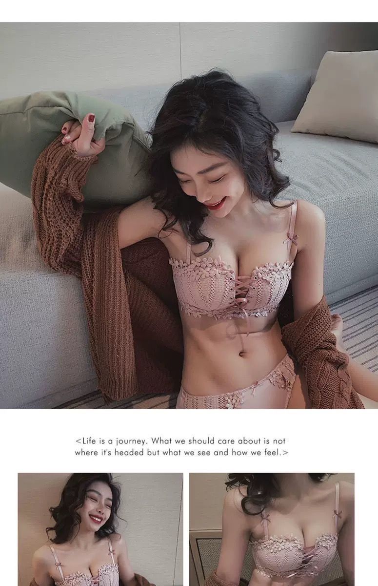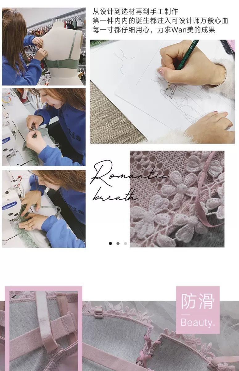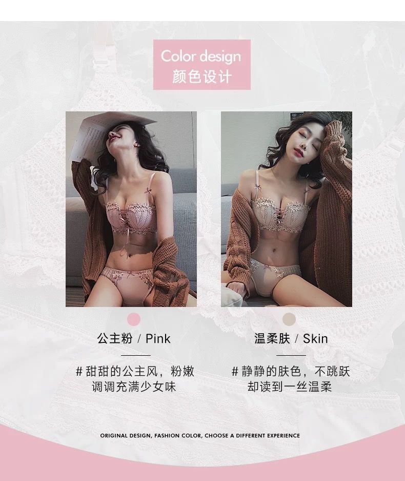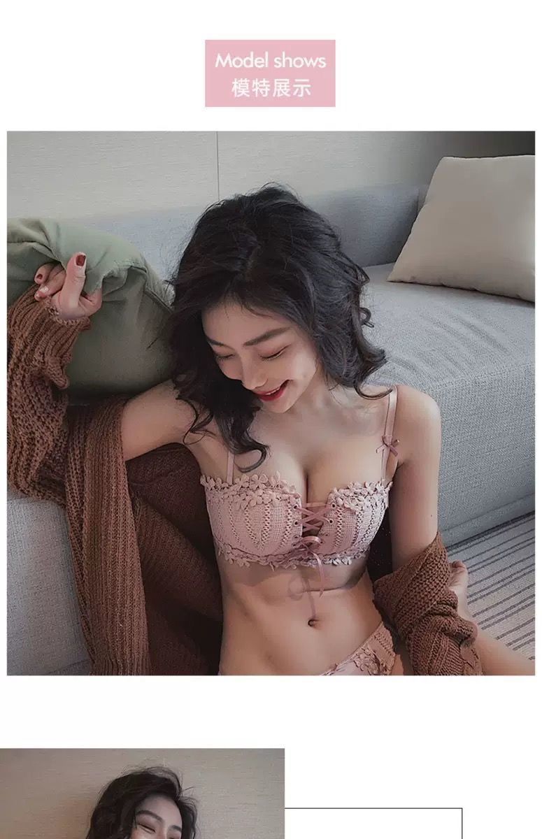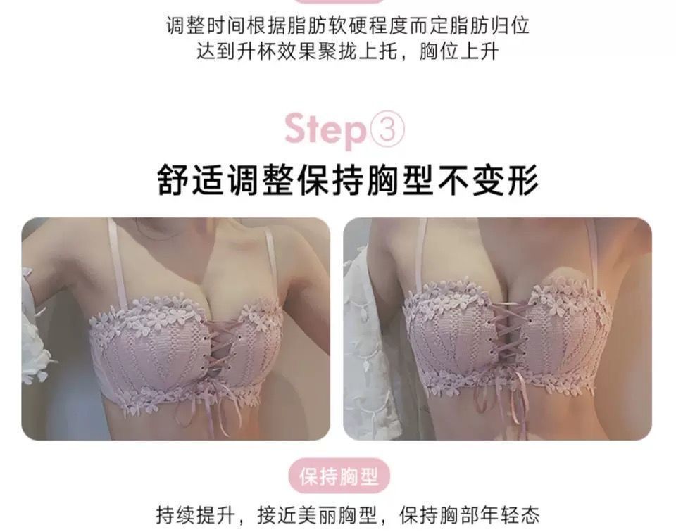 순수한 매력의 레이스 노와이어 브라, 작은 가슴을 모아주는 스트랩 브라, 학생용 옆가슴 보정 브라 세트 (패드 포함)스토어 가기