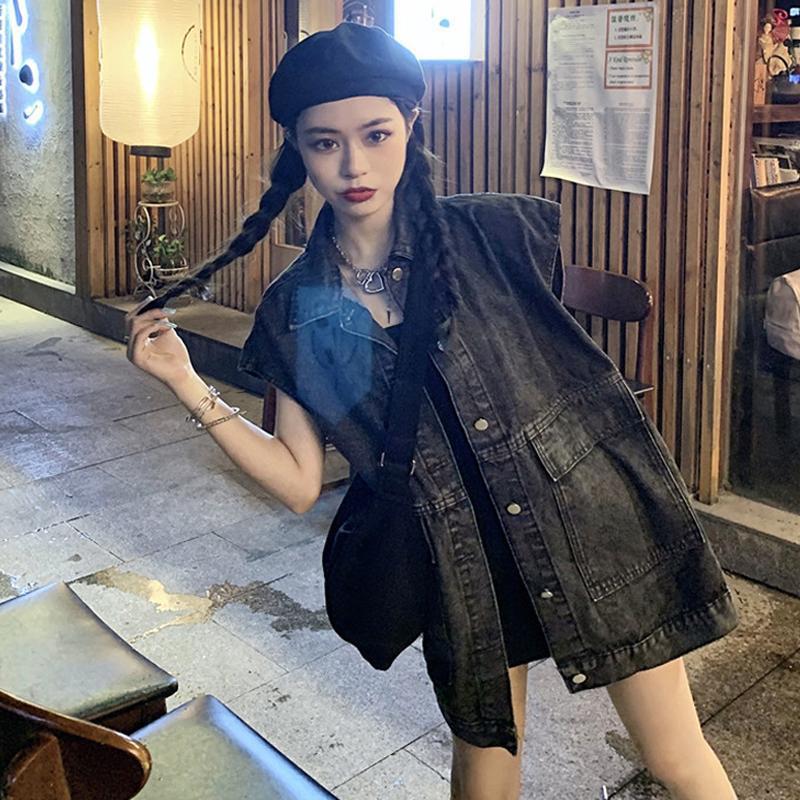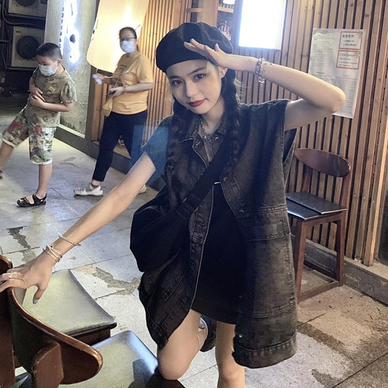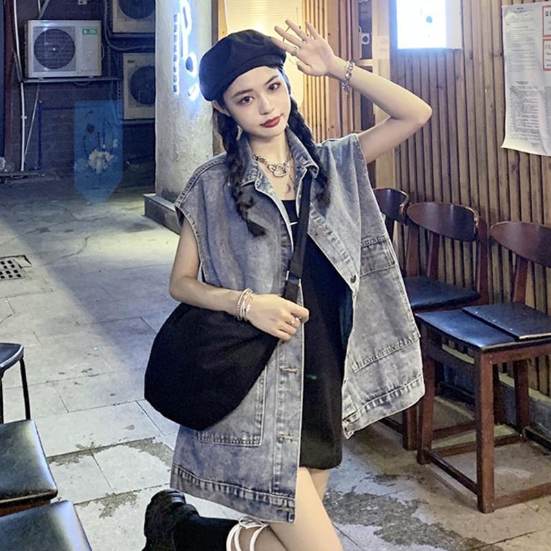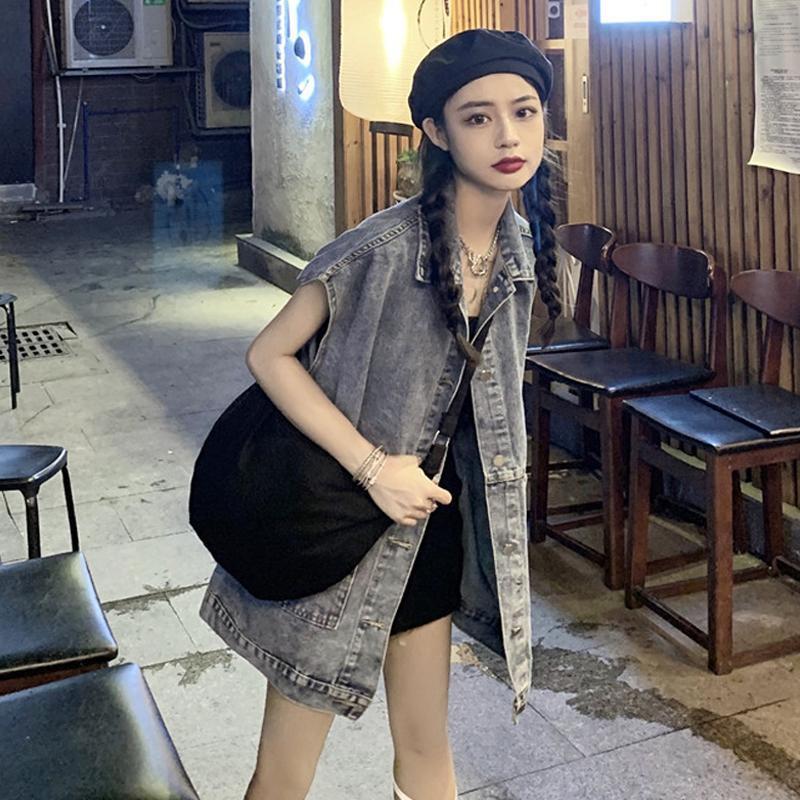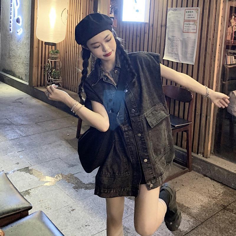 여성을위한 복고풍 데님 조끼 2025 가을, 겨울 새로운 디자인 조끼 레이어링 조끼 재킷 한국어 버전스토어 가기
