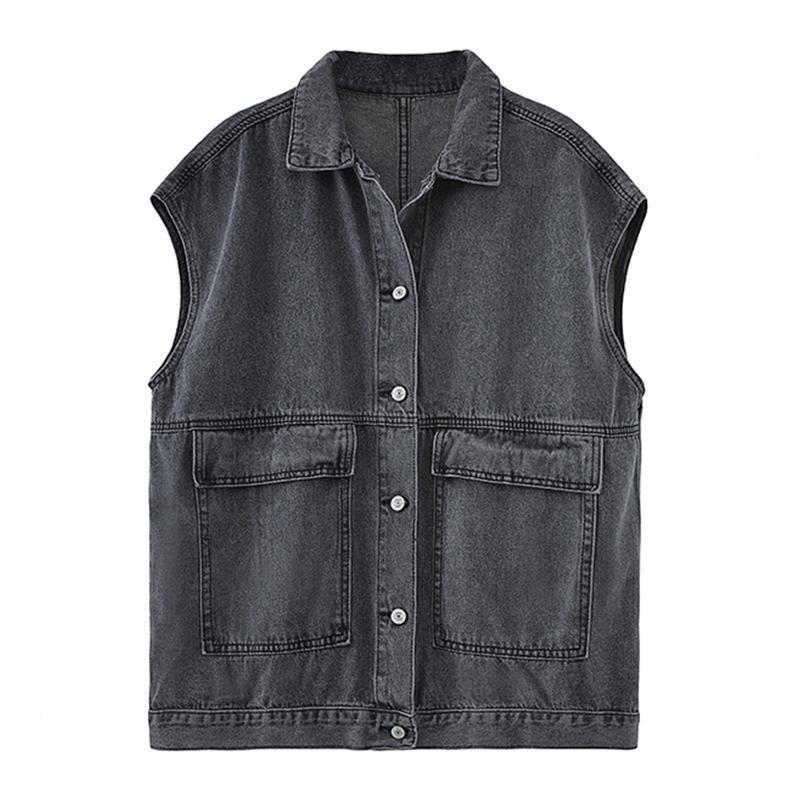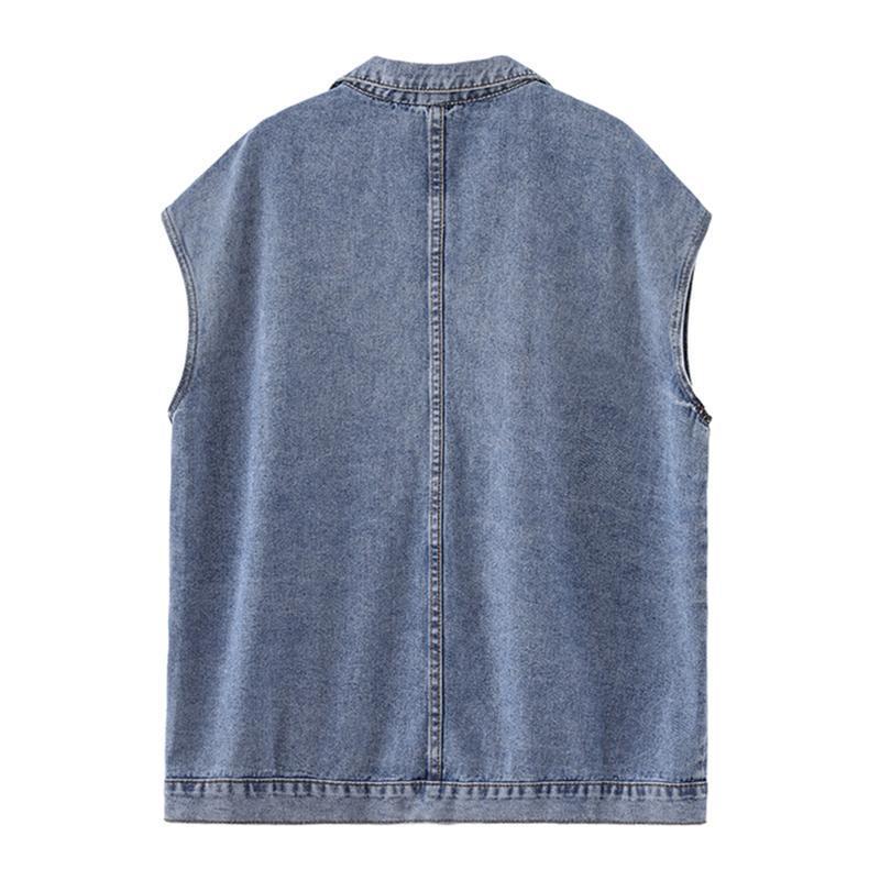 여성을위한 복고풍 데님 조끼 2025 가을, 겨울 새로운 디자인 조끼 레이어링 조끼 재킷 한국어 버전
