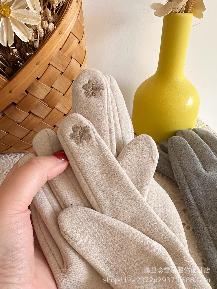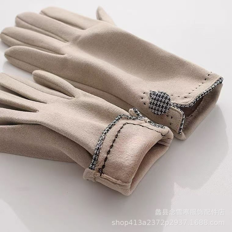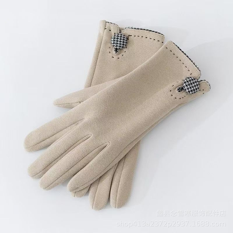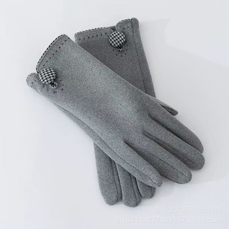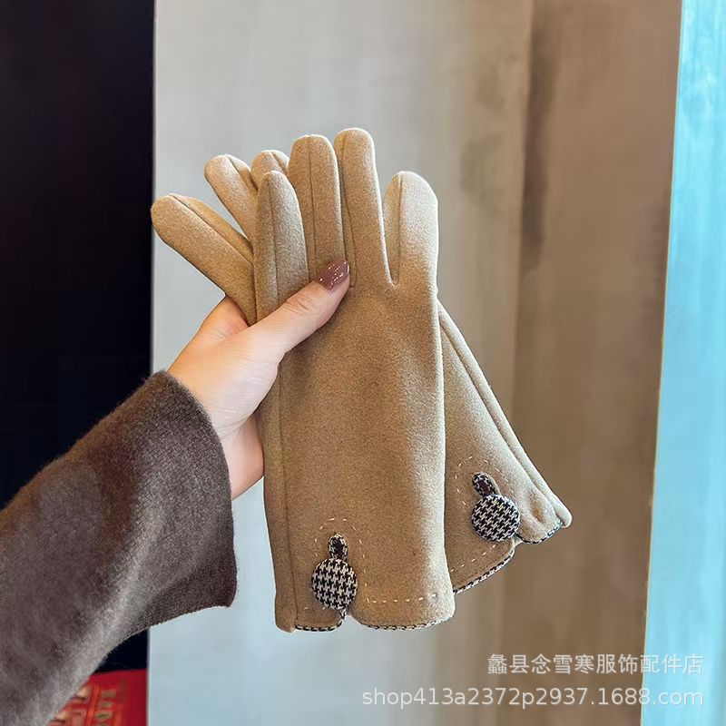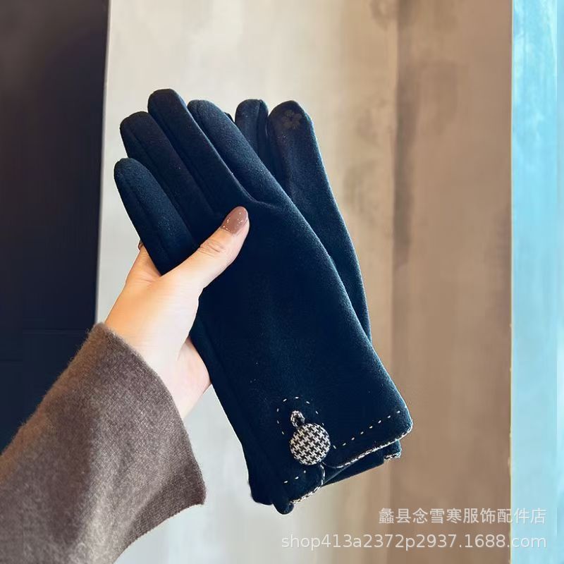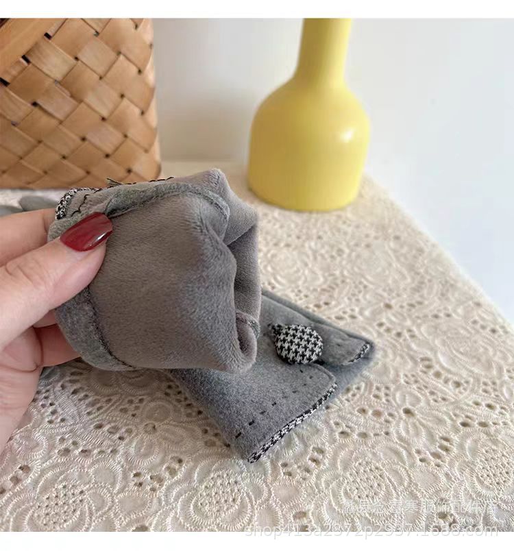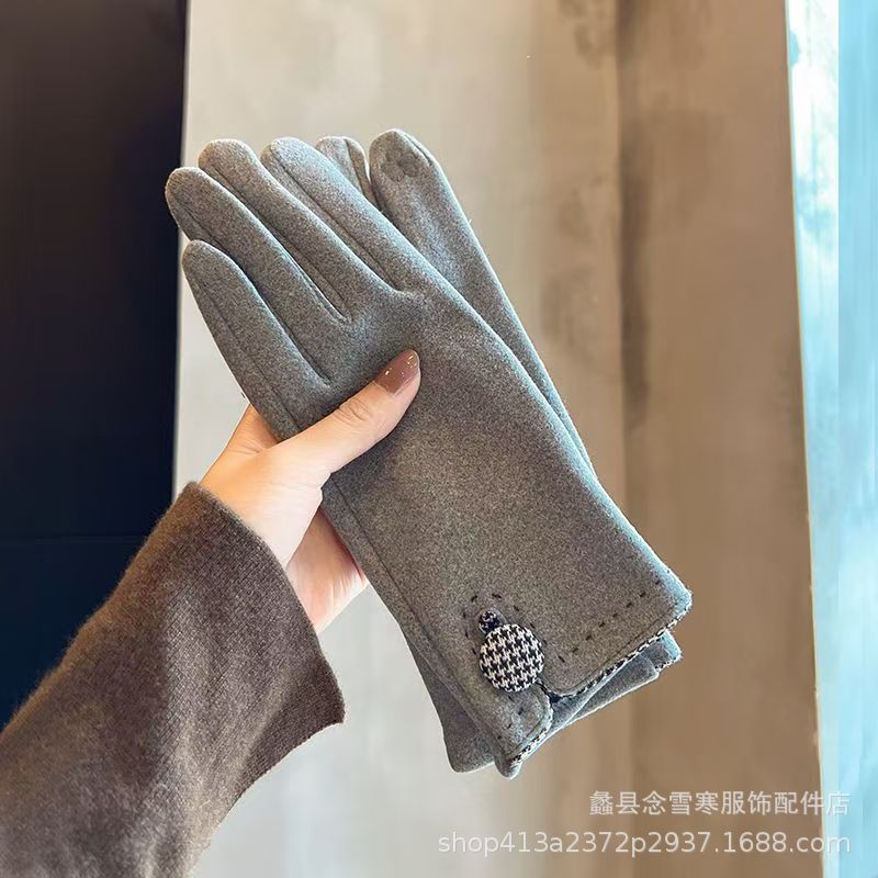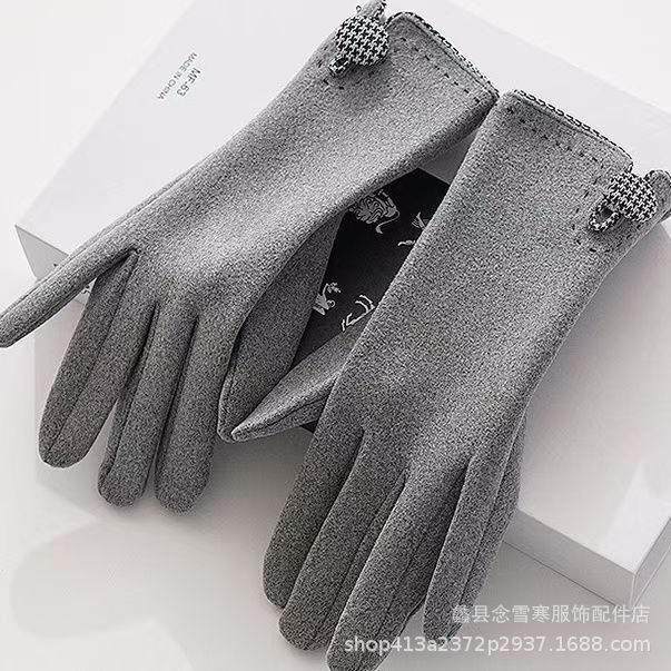 재고 따뜻한 장갑 여성의 가을과 겨울 터치 스크린 기모 한국 스타일 귀여운 Houndstooth 스타일 냉난방 장갑