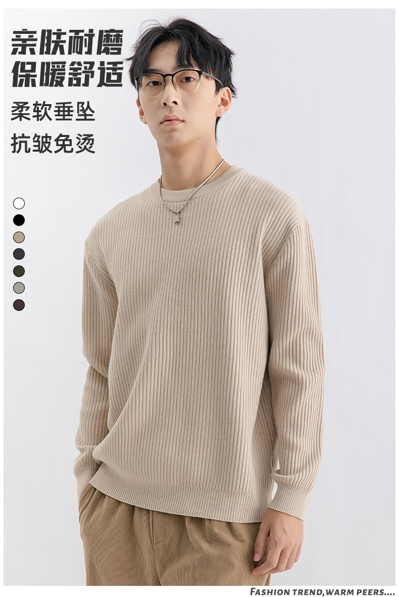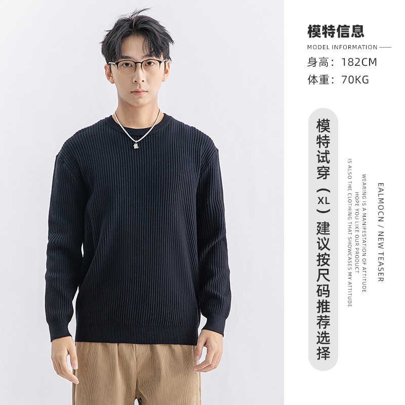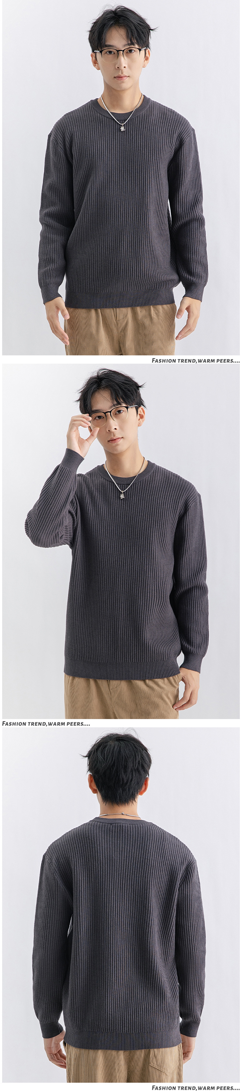 국경 간 무역 세로 줄무늬 남성 니트 스웨터 캐주얼 남성 라운드넥 스웨터 다용도 보온 이너웨어 남성 가을 겨울