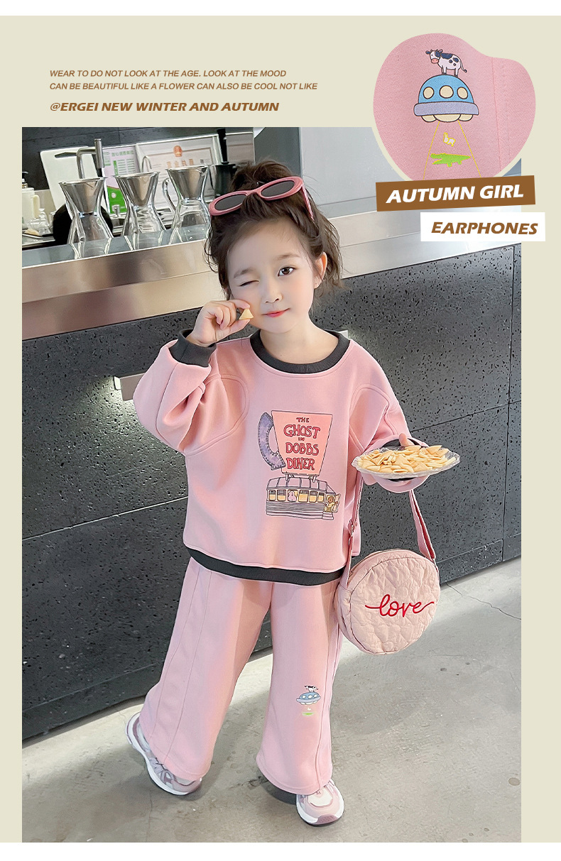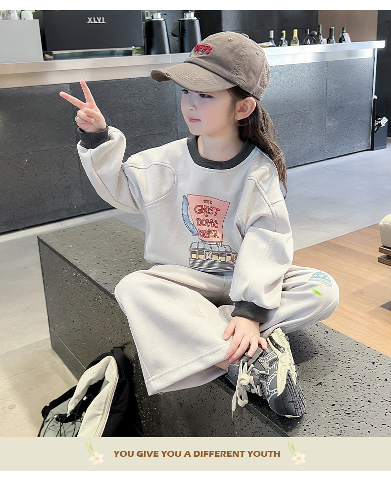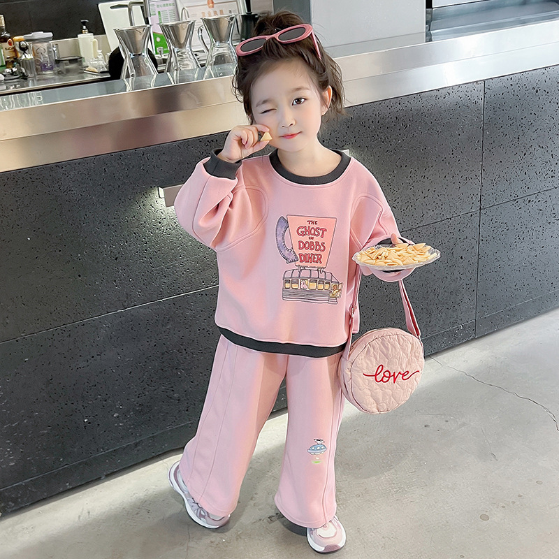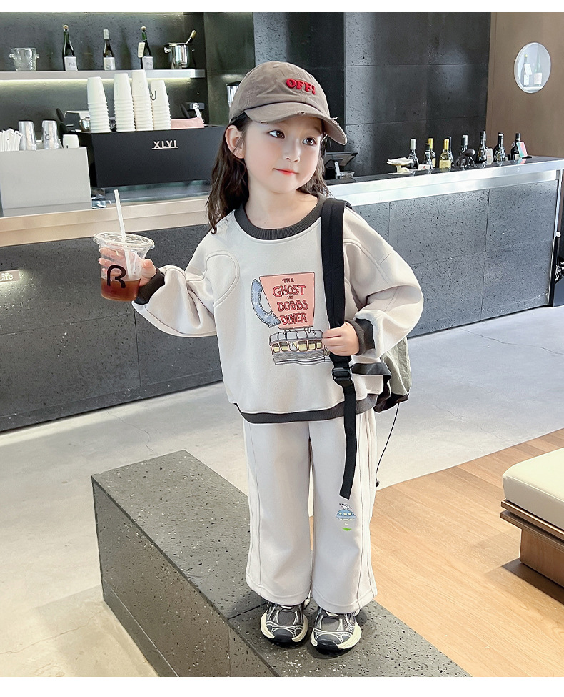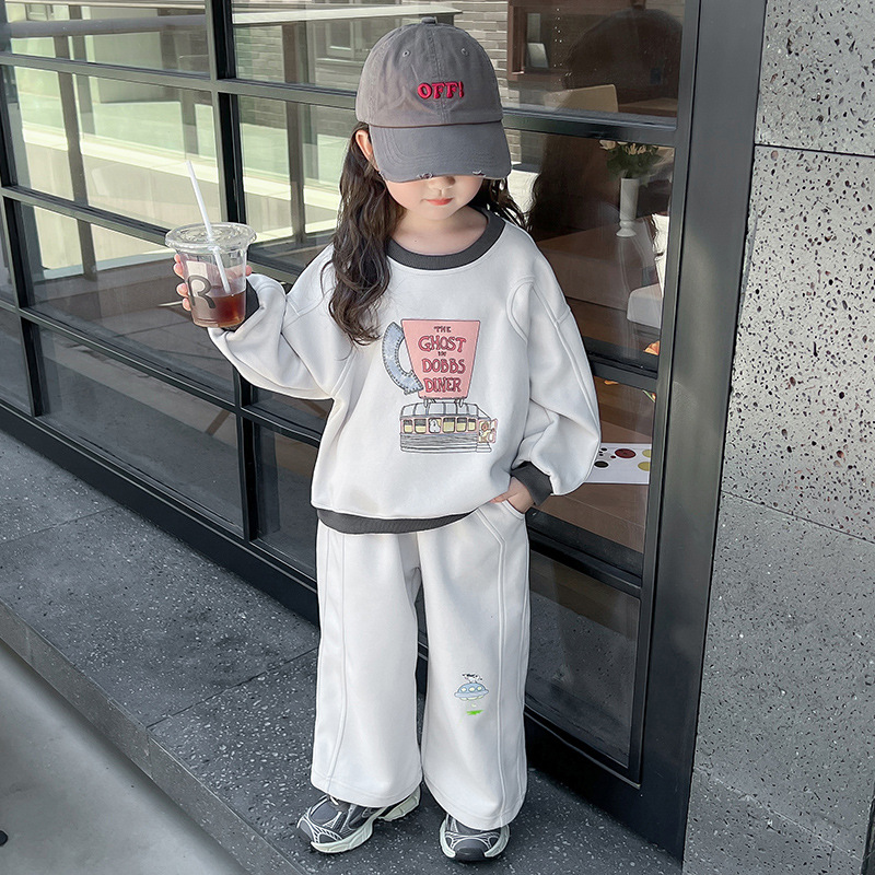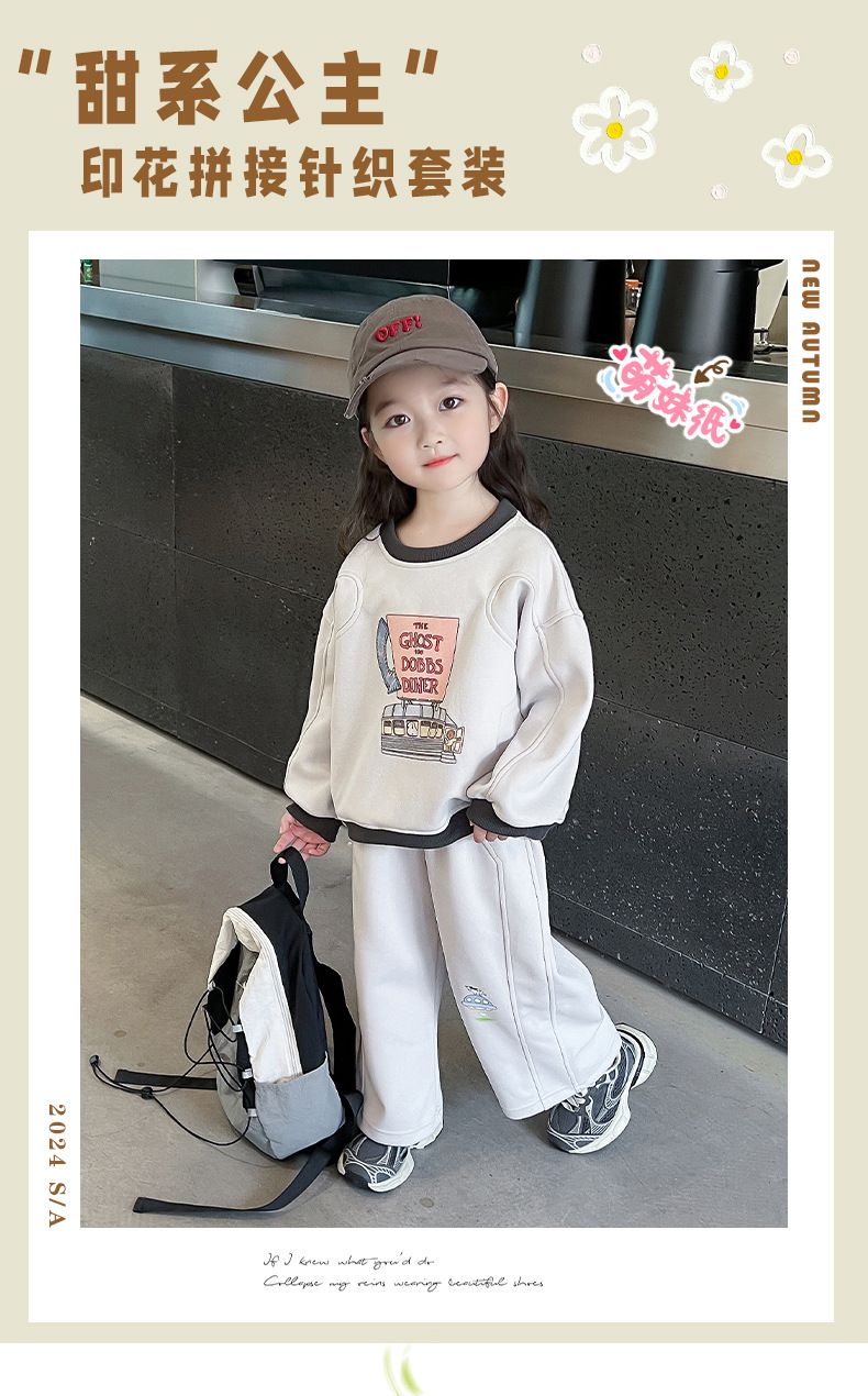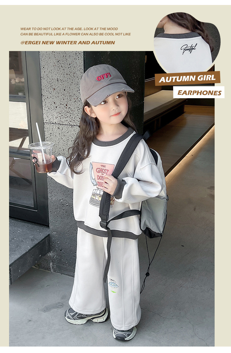 소녀의 봄과 가을 땀 세트 2024 새로운 소녀 서양식 한국 느슨한 투피스 어린이 유행 가을 옷스토어 가기