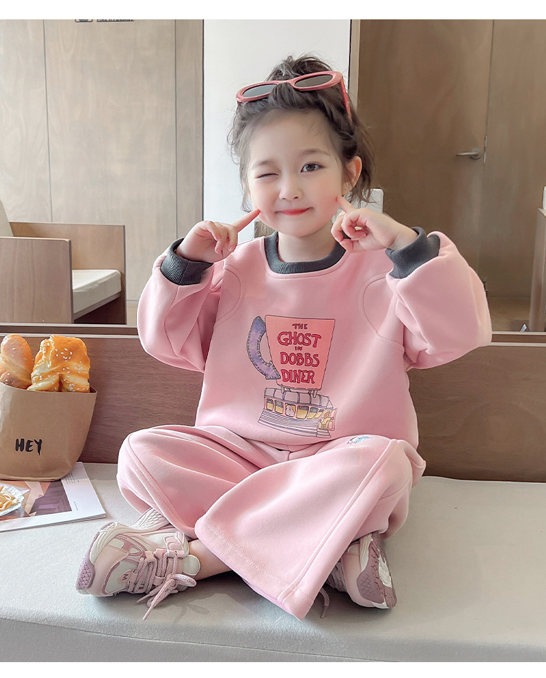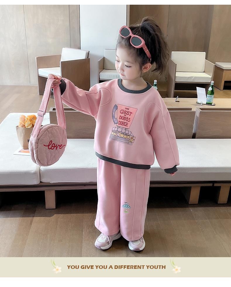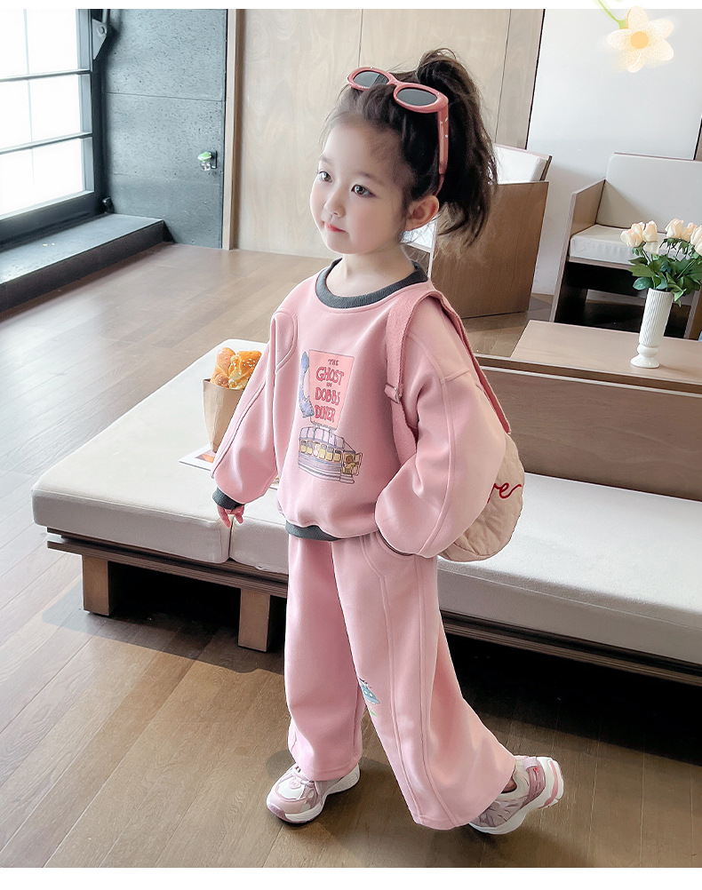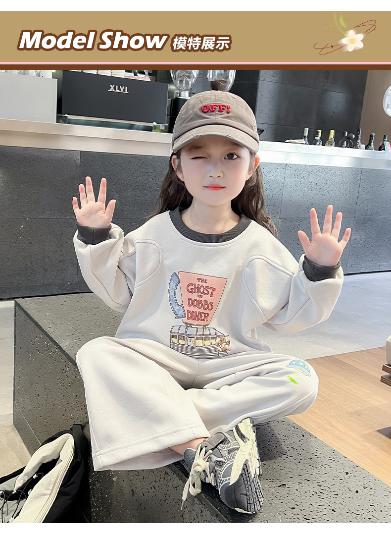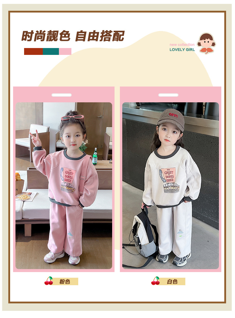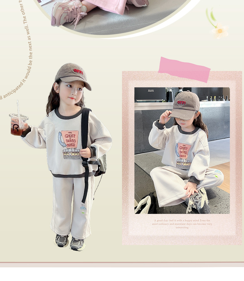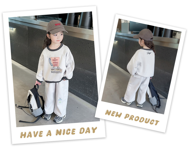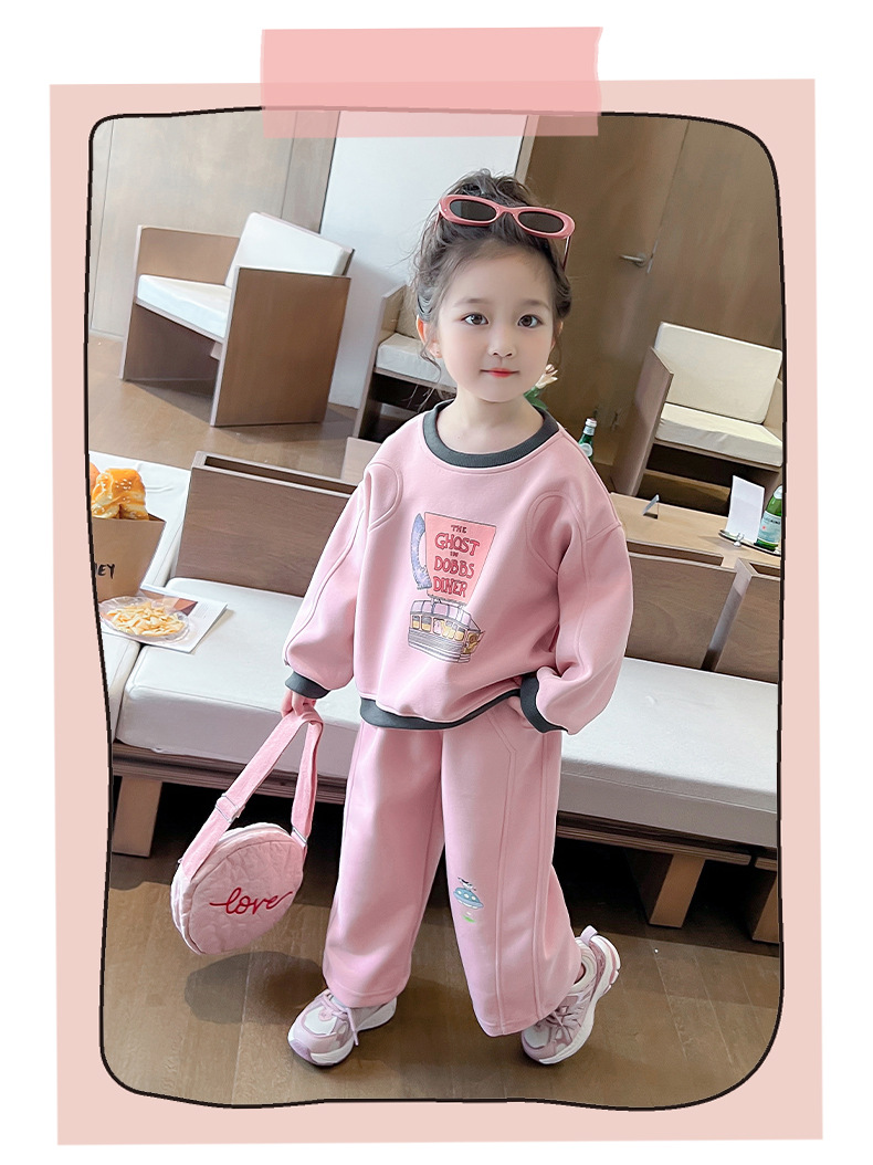 소녀의 봄과 가을 땀 세트 2024 새로운 소녀 서양식 한국 느슨한 투피스 어린이 유행 가을 옷스토어 가기