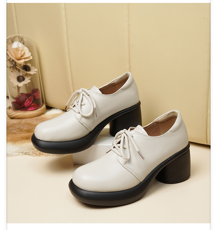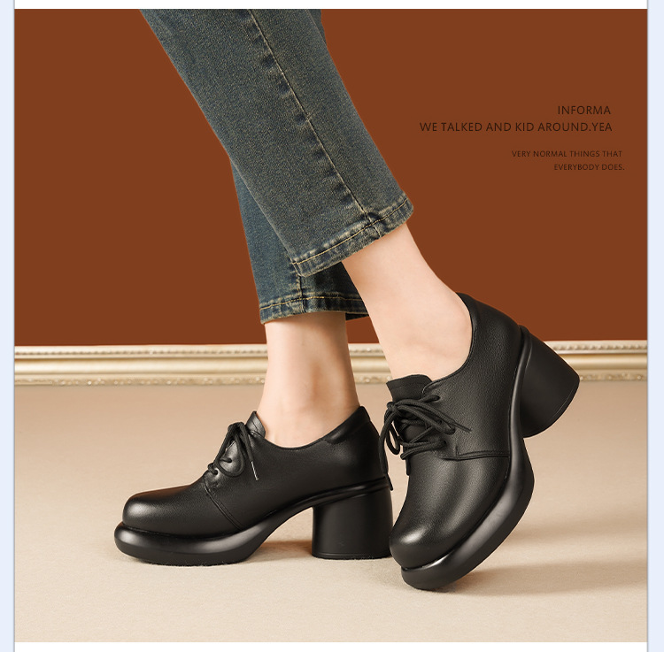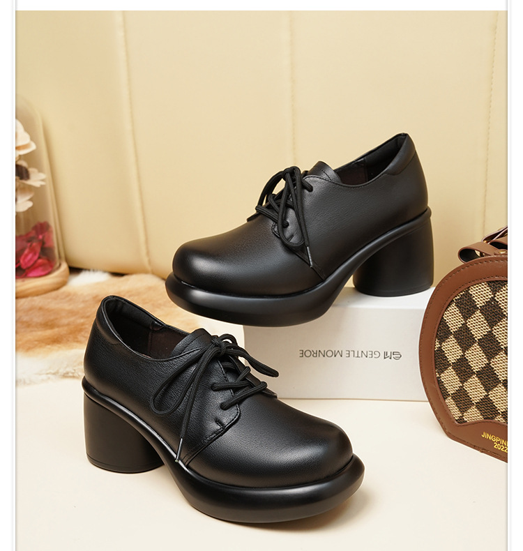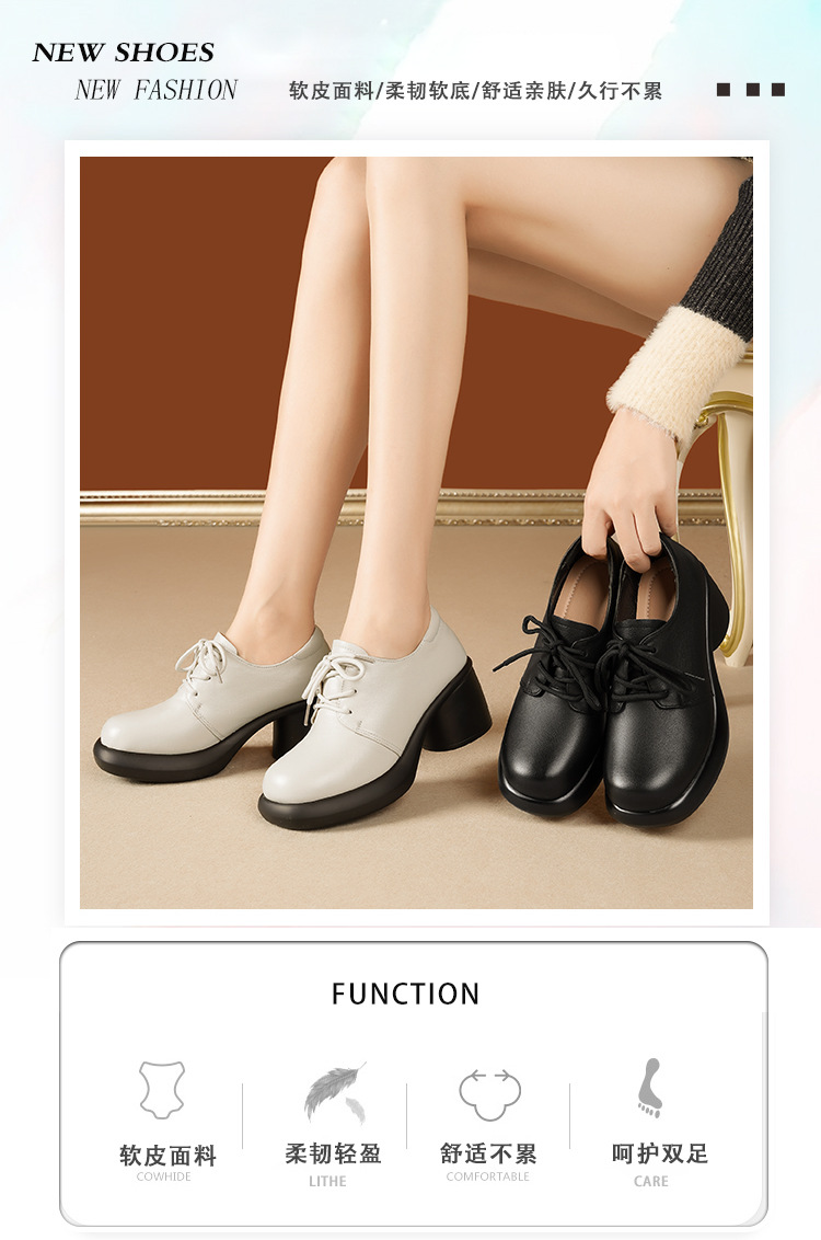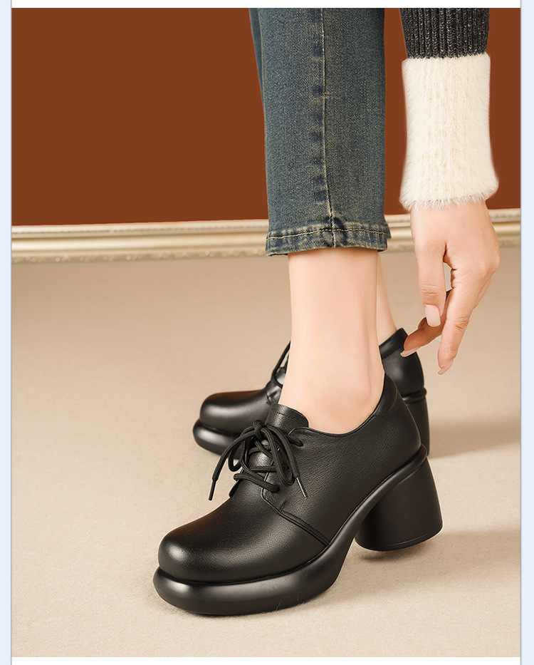 24 가을 새로운 정품 가죽 여성 싱글 가죽 신발 하이힐 두꺼운 힐 방수 플랫폼 발목 부츠 SRZ3352 영국 패션 신발스토어 가기
