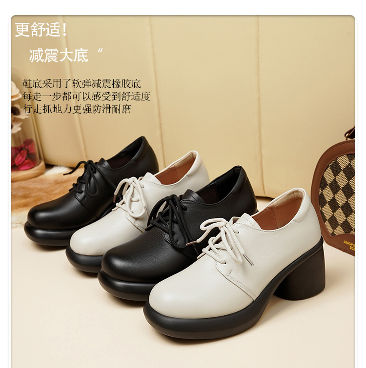 24 가을 새로운 정품 가죽 여성 싱글 가죽 신발 하이힐 두꺼운 힐 방수 플랫폼 발목 부츠 SRZ3352 영국 패션 신발