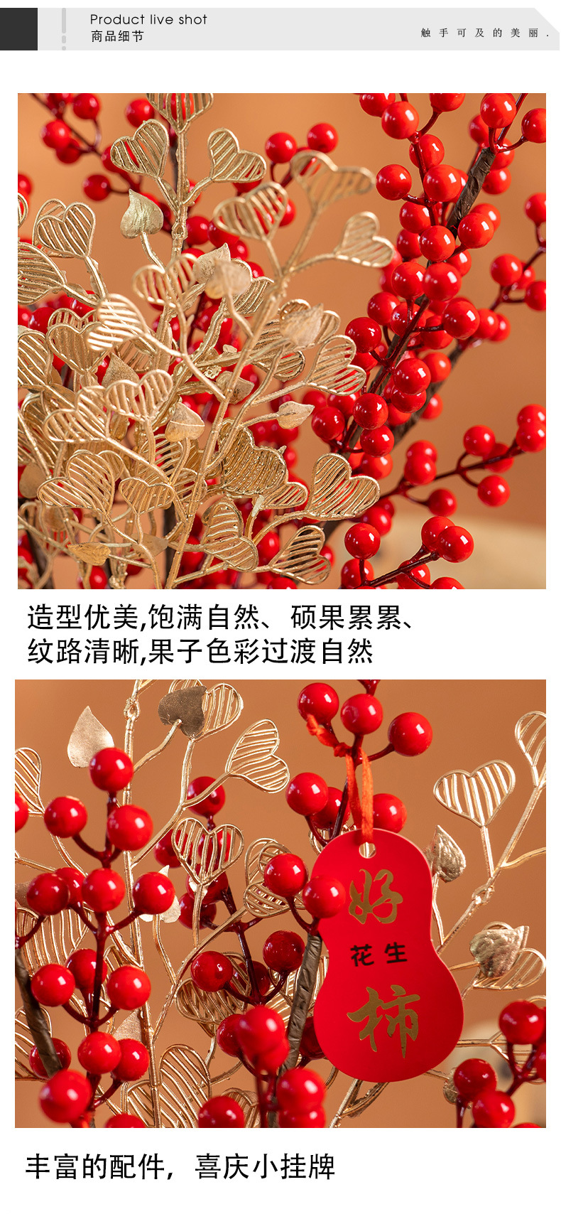 产品材质:泡沫果实+注塑枝干+铁丝