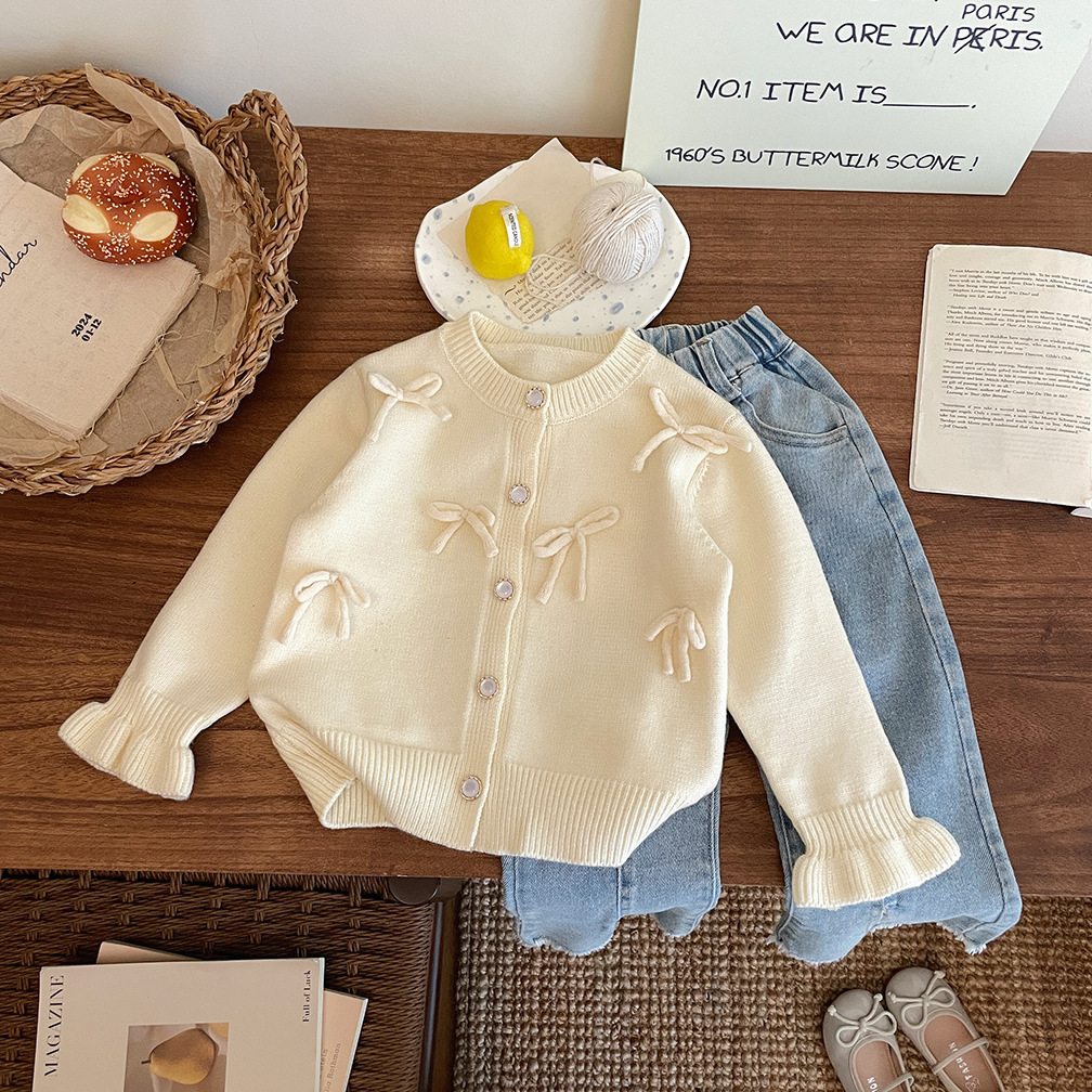 2025 새로운 가을, 겨울 소녀의 나비 매듭 니트 카디건 스웨터 코트 귀여운 아기 달콤한 탑 한국 패션