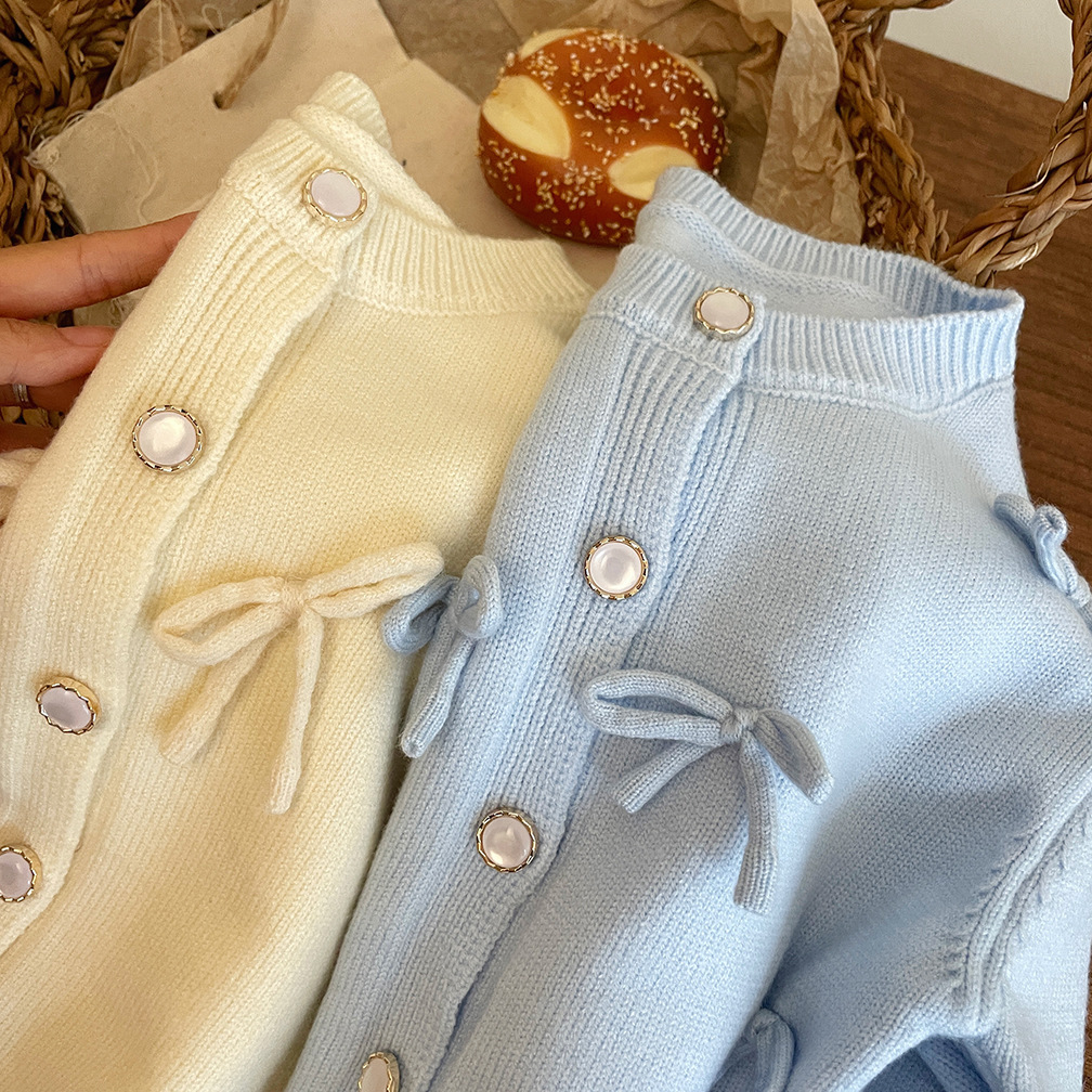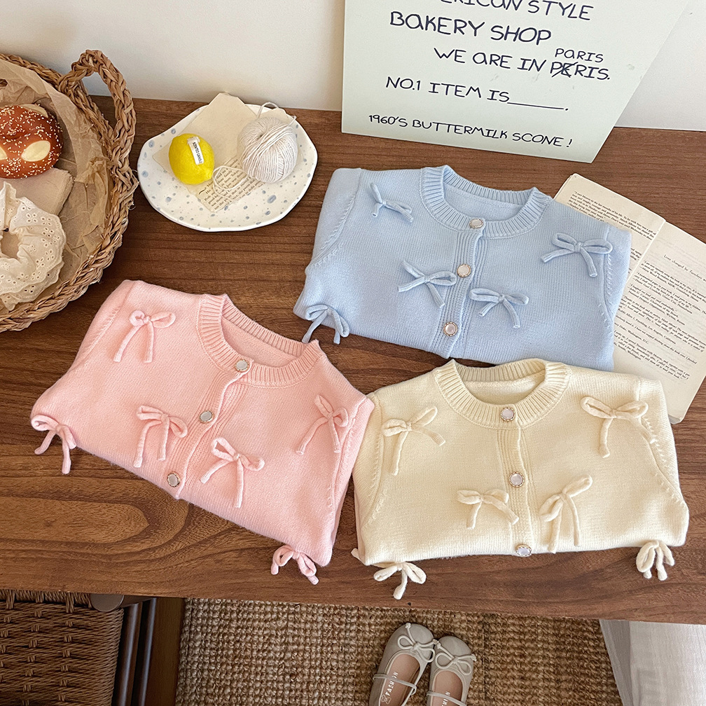 2025 새로운 가을, 겨울 소녀의 나비 매듭 니트 카디건 스웨터 코트 귀여운 아기 달콤한 탑 한국 패션스토어 가기