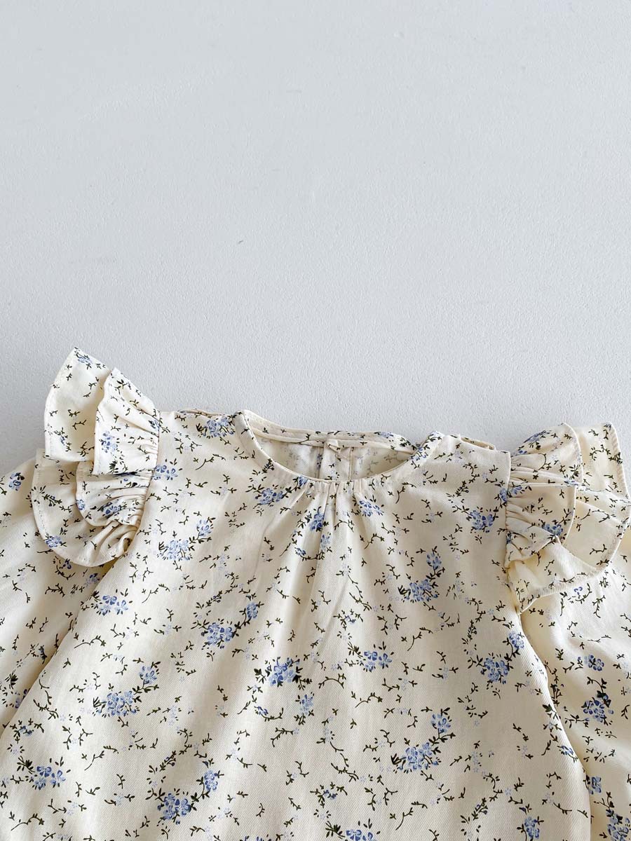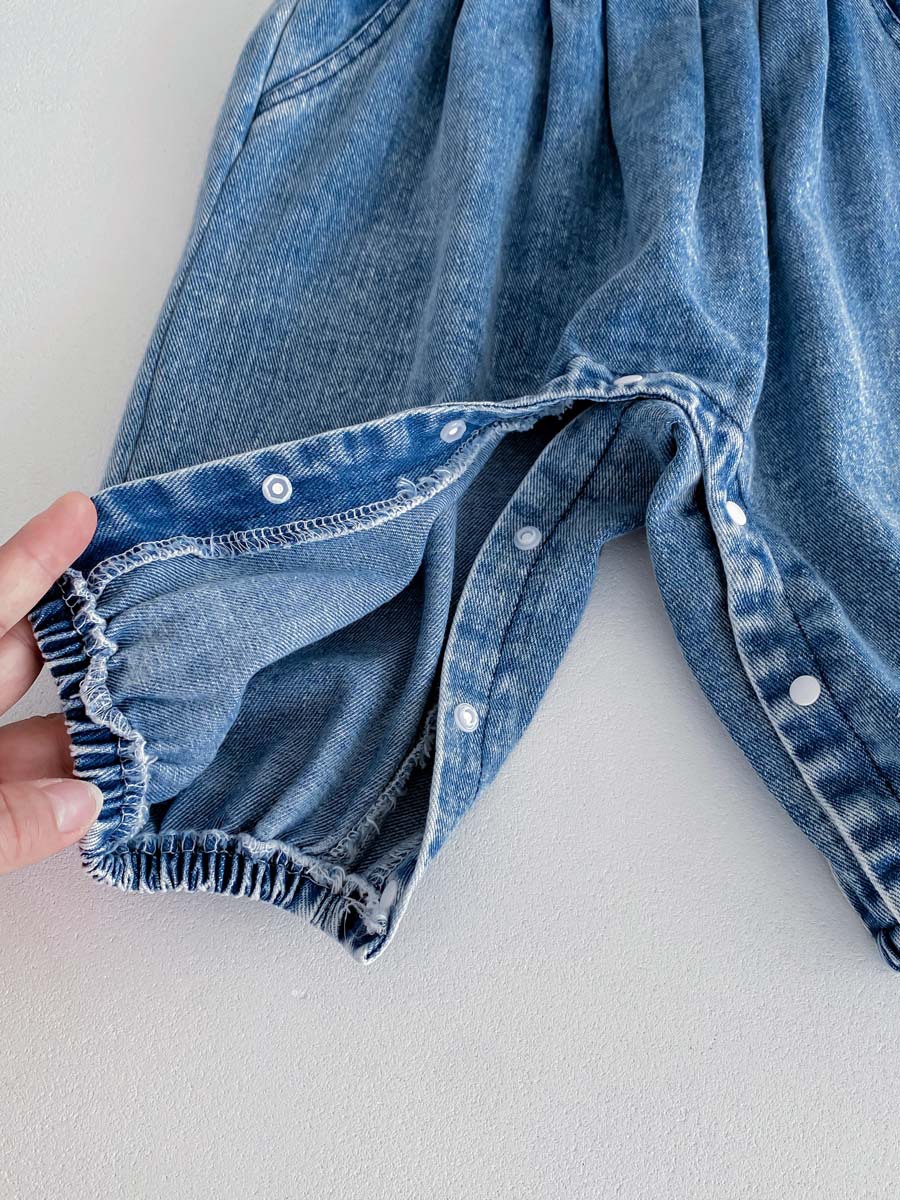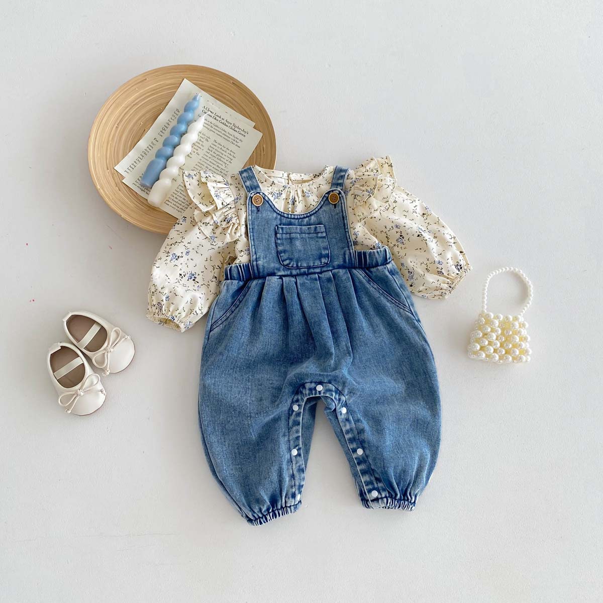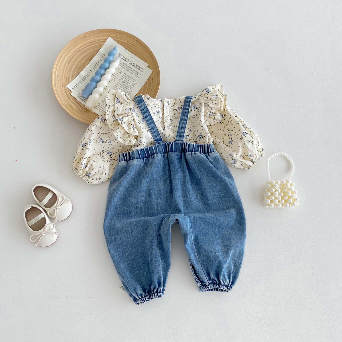 한국식 아기의 가을 새 도착 데님 스트래퍼 바지 세트 아기 소녀 달콤한 꽃 셔츠 투피스 세트