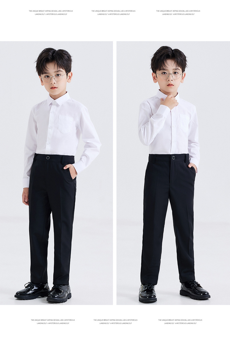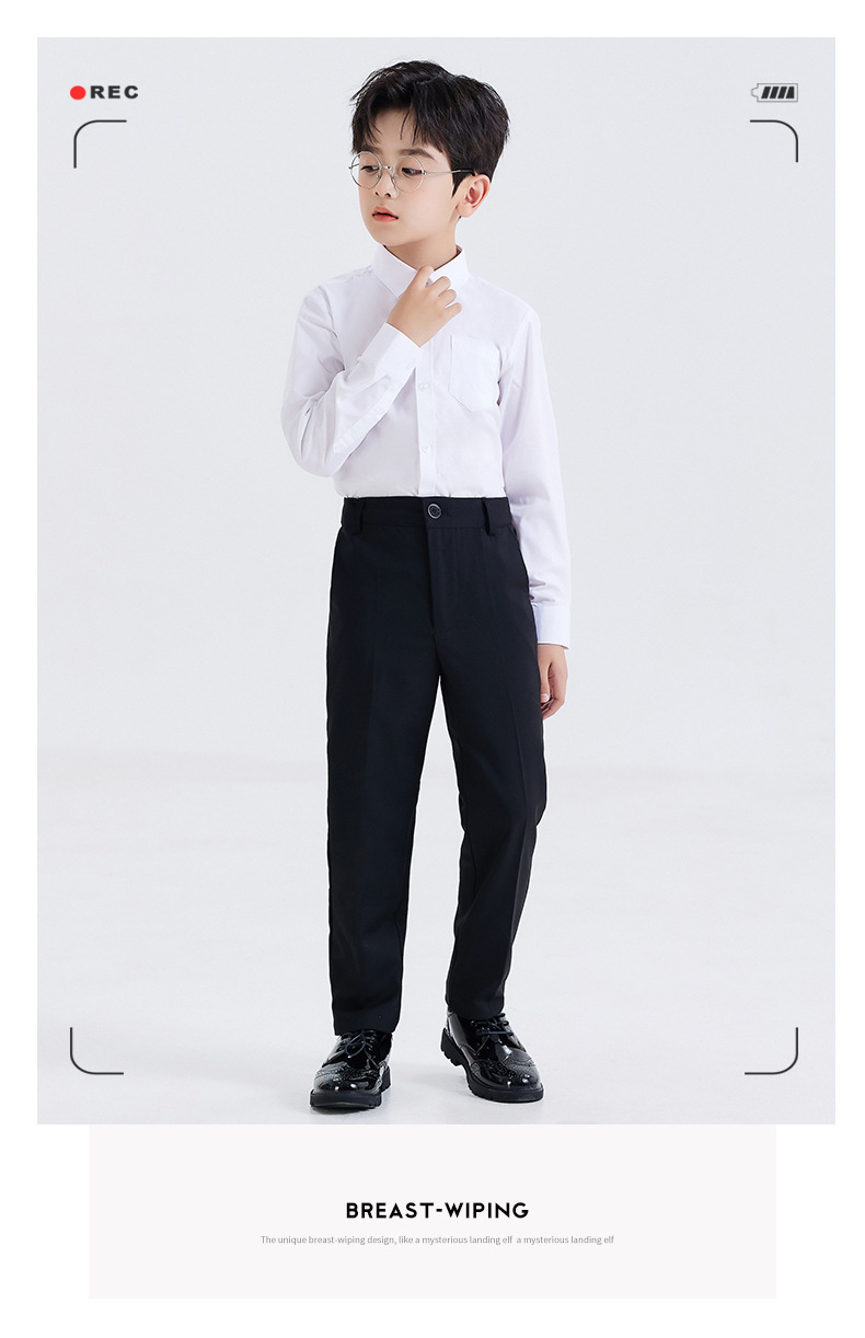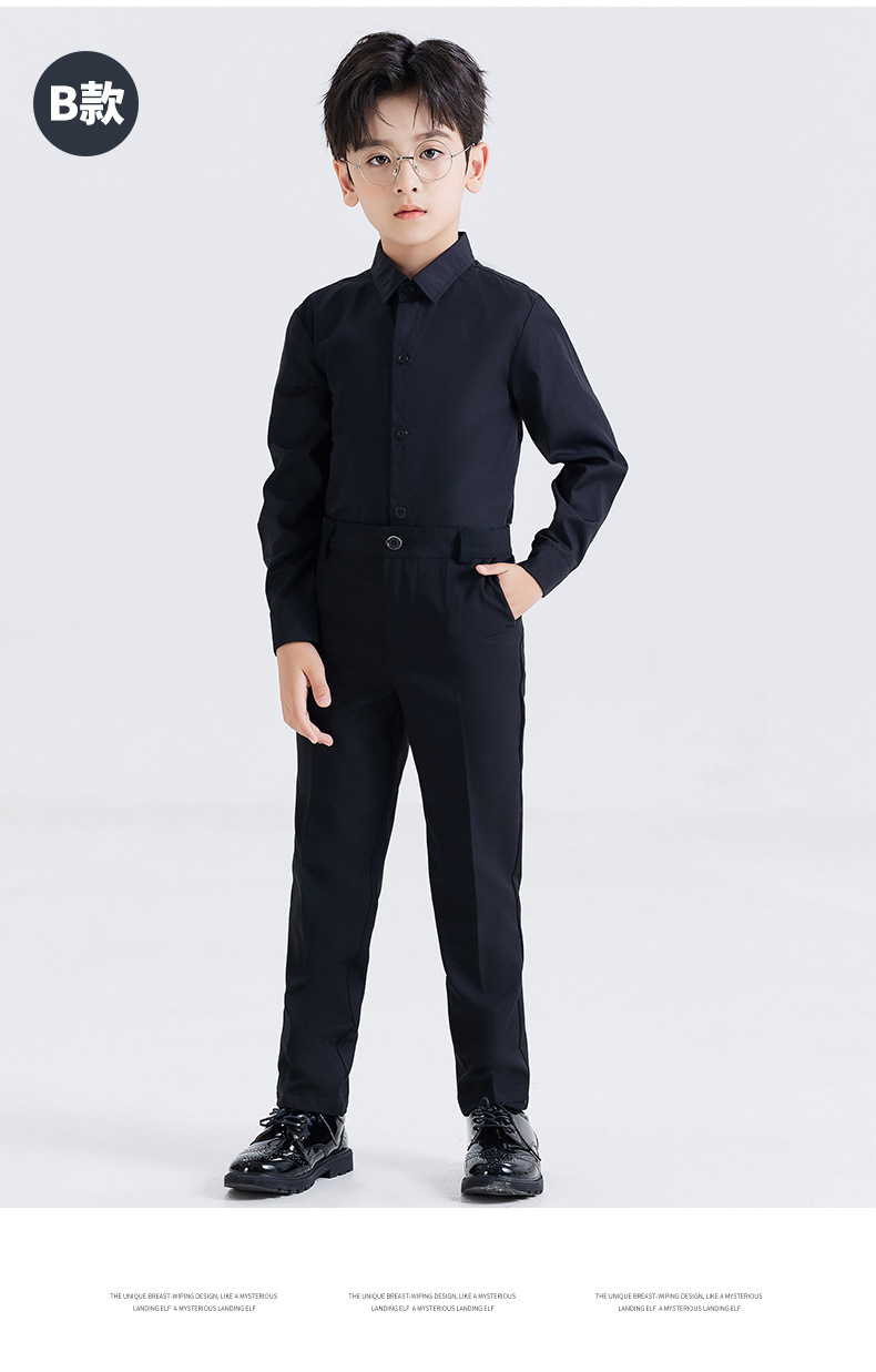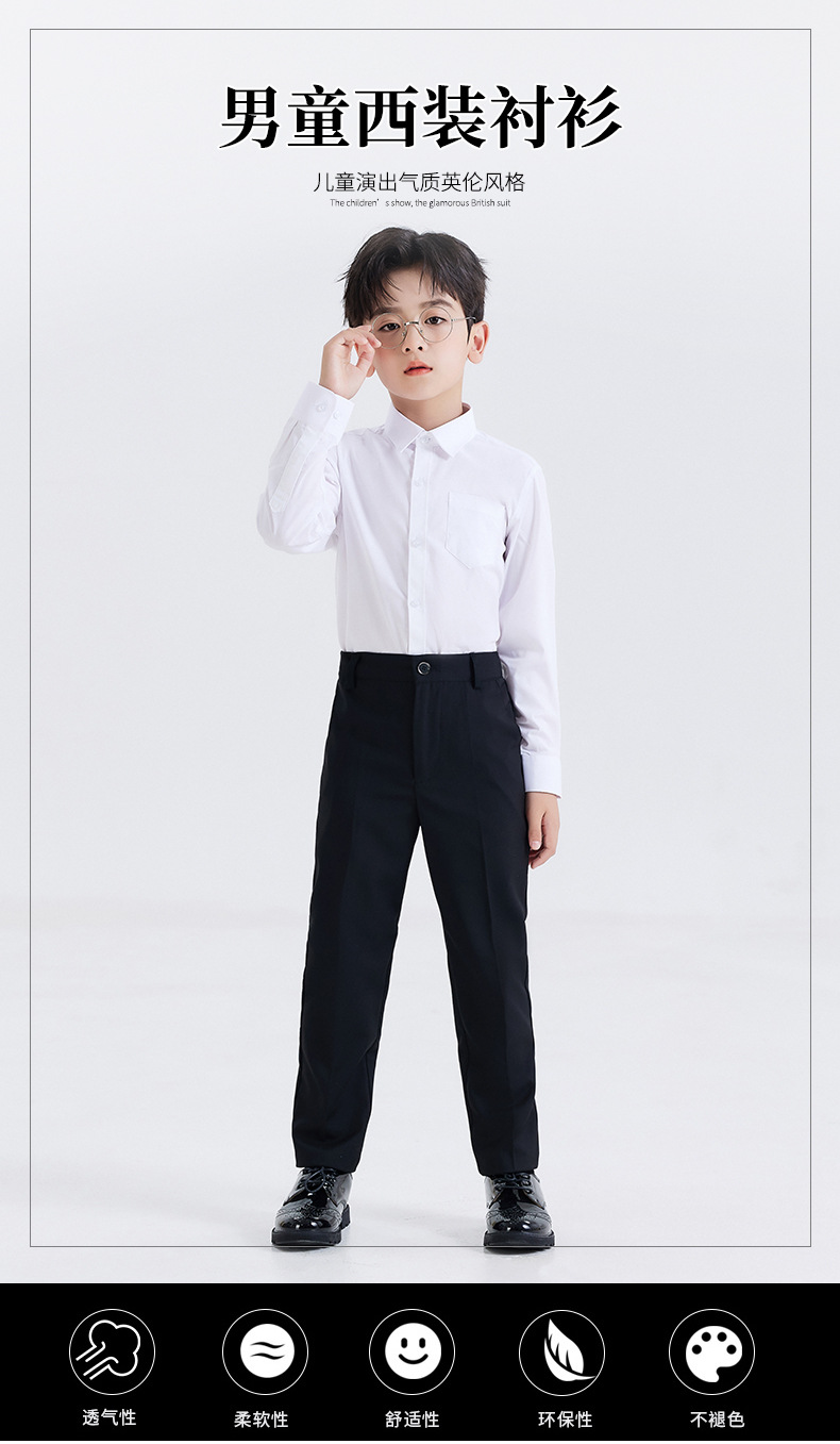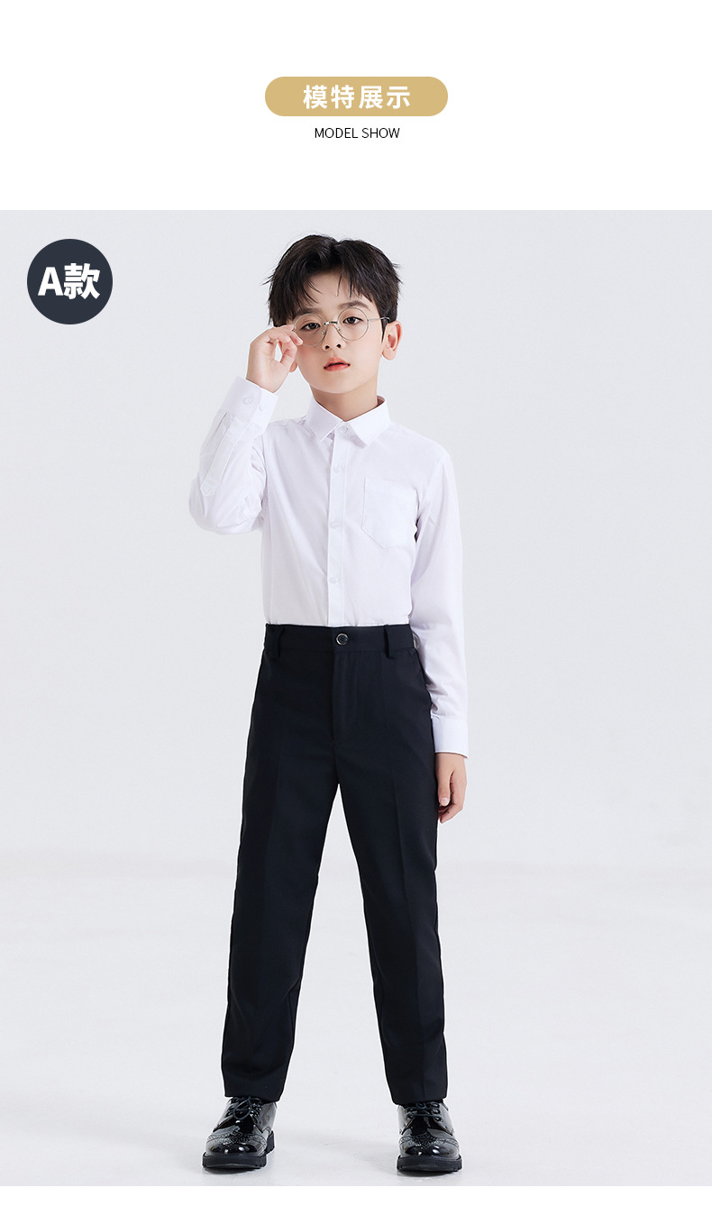 남학생 원피스 흰색 셔츠 어린이 긴 소매 흰색 셔츠 세트 바지 코러스 블랙 바지 세트 셔츠 의상 세트스토어 가기