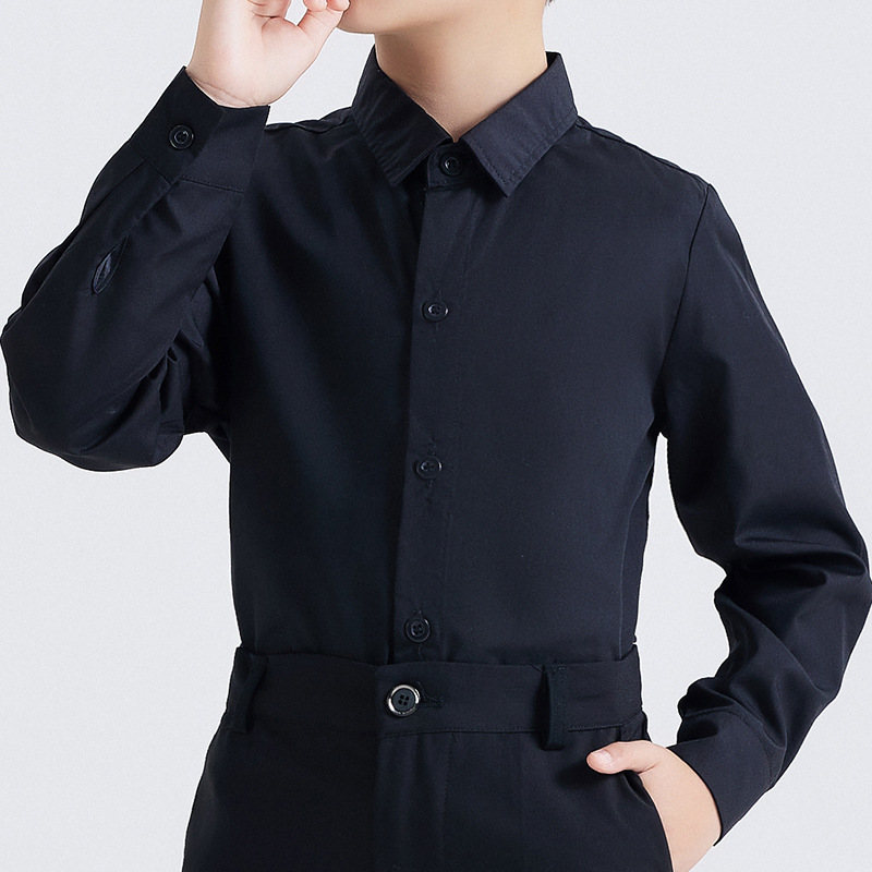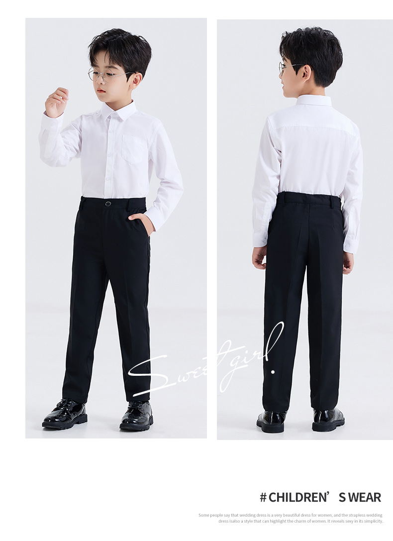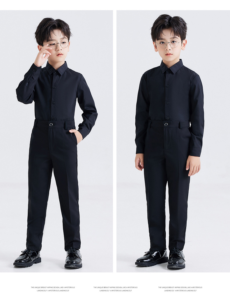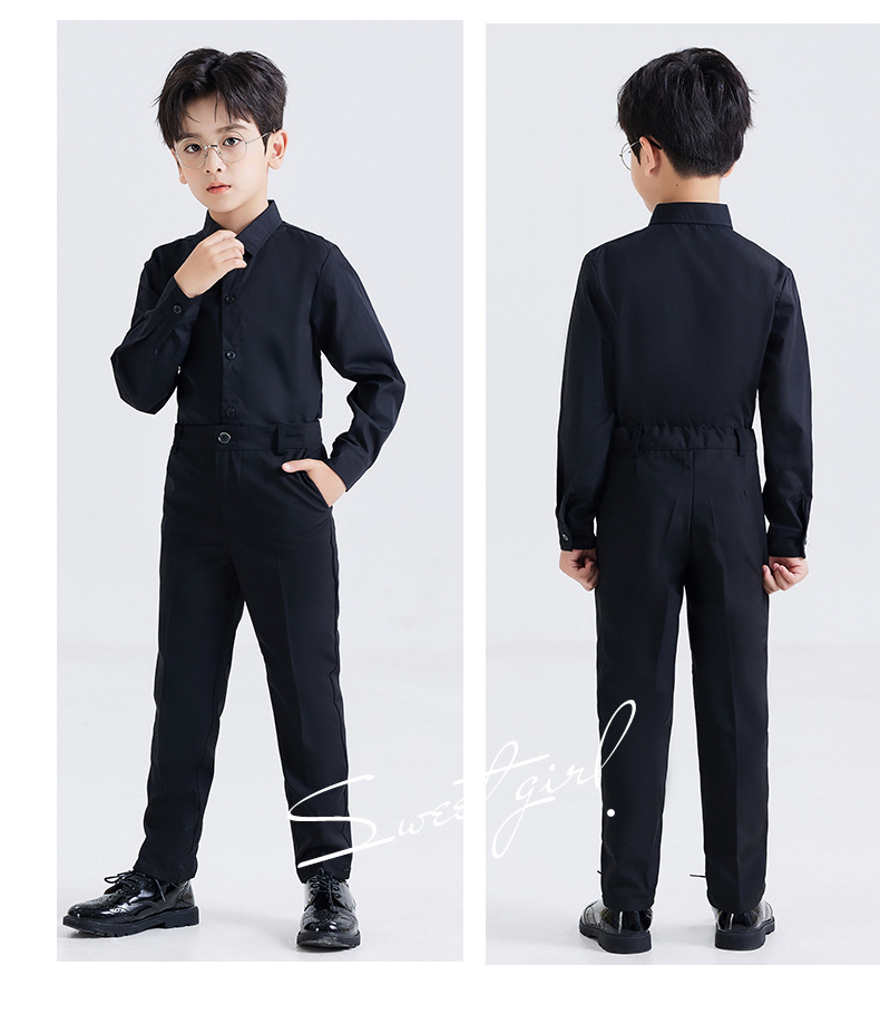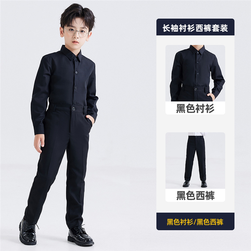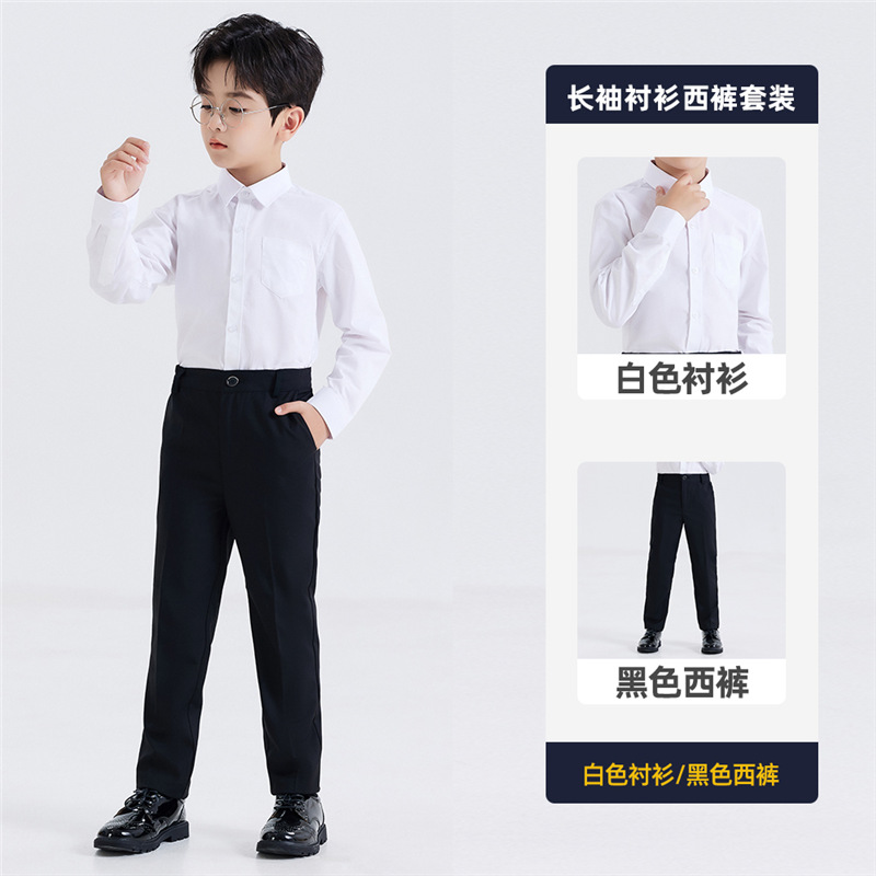 남학생 원피스 흰색 셔츠 어린이 긴 소매 흰색 셔츠 세트 바지 코러스 블랙 바지 세트 셔츠 의상 세트