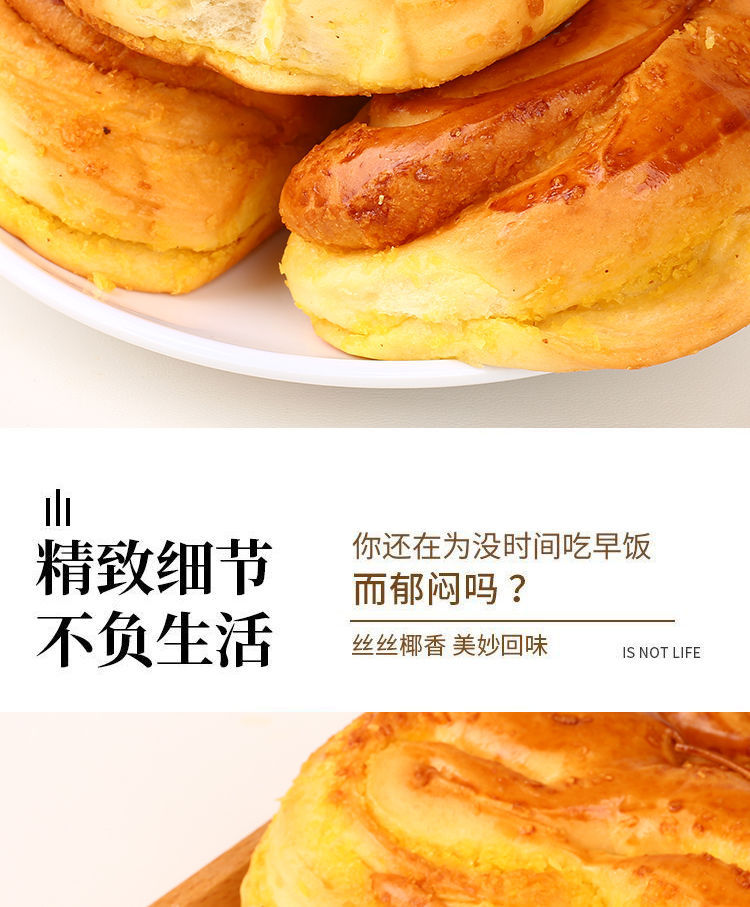 손으로 찢은 코코넛 라자냐 빵 토스트 잘게 썬 코코넛 아침 식사 케이크 신선한 부드러운 간식 영양가있는 식사 대체품 전체 상자 도매스토어 가기