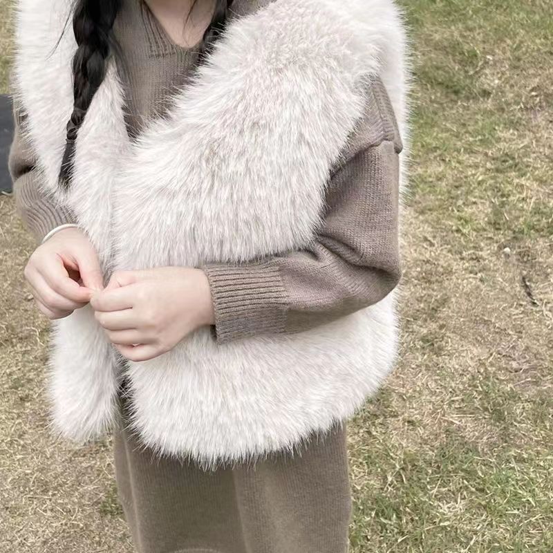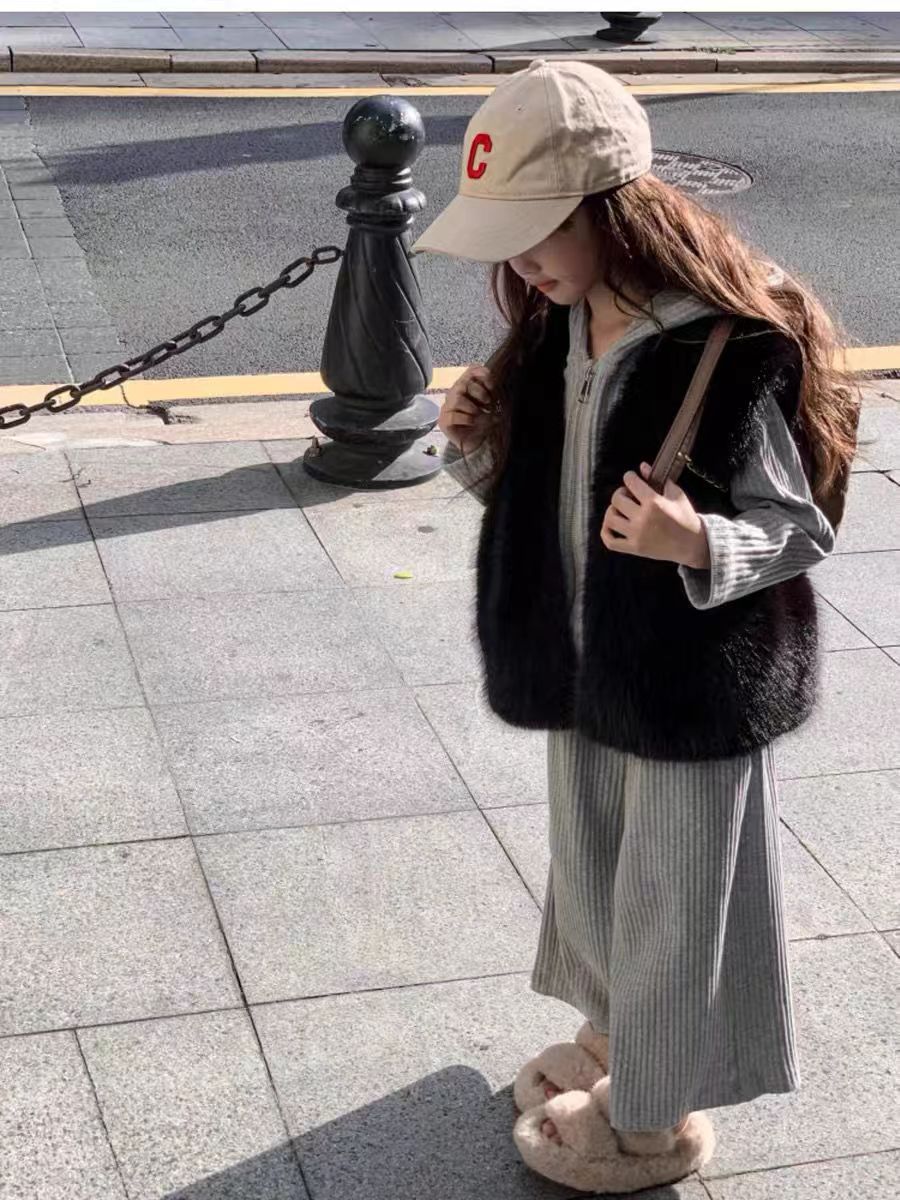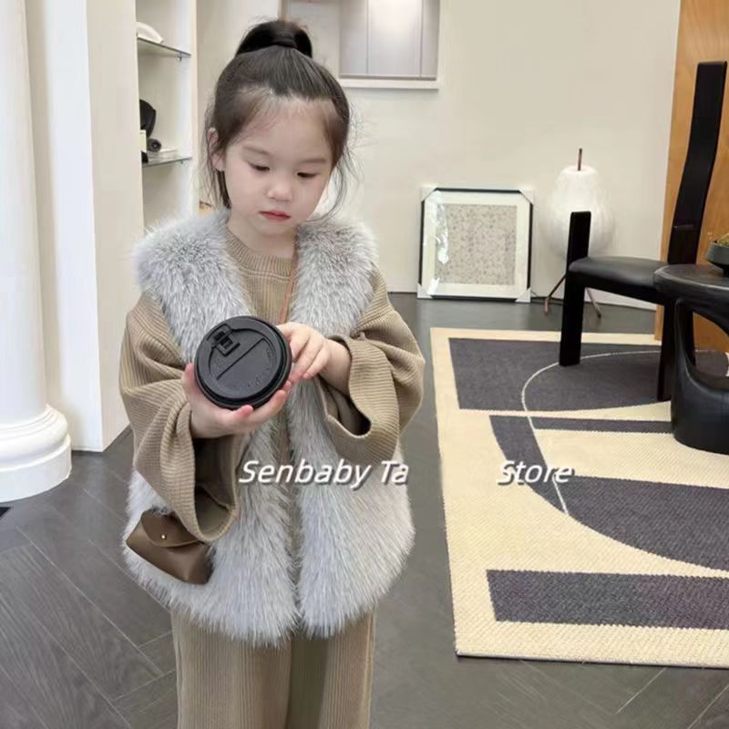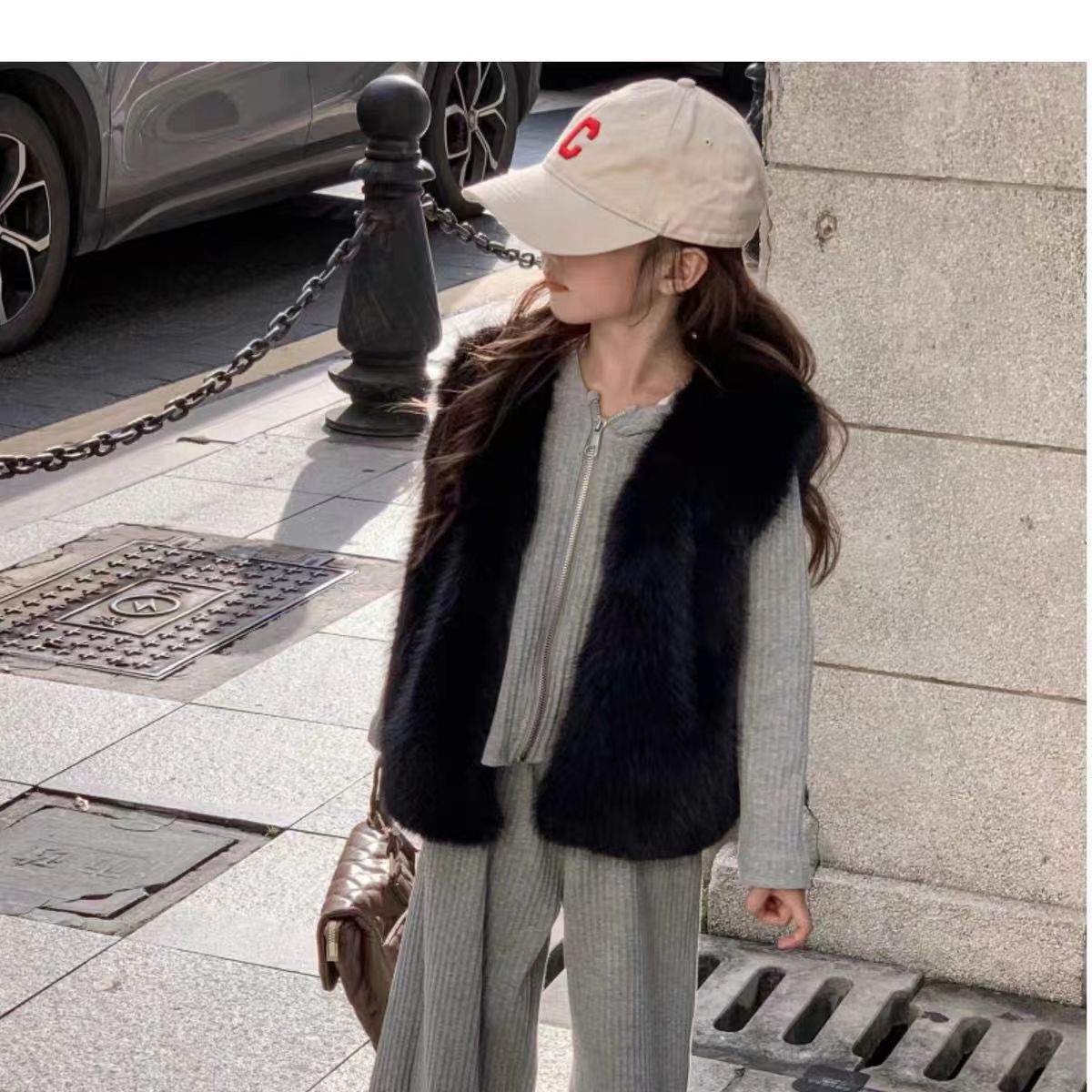 어린이용 인조 모피 조끼 신상품 2025 가을 겨울 한국 스타일 남녀 아기 다용도 패셔너블 모피 조끼 외출용스토어 가기