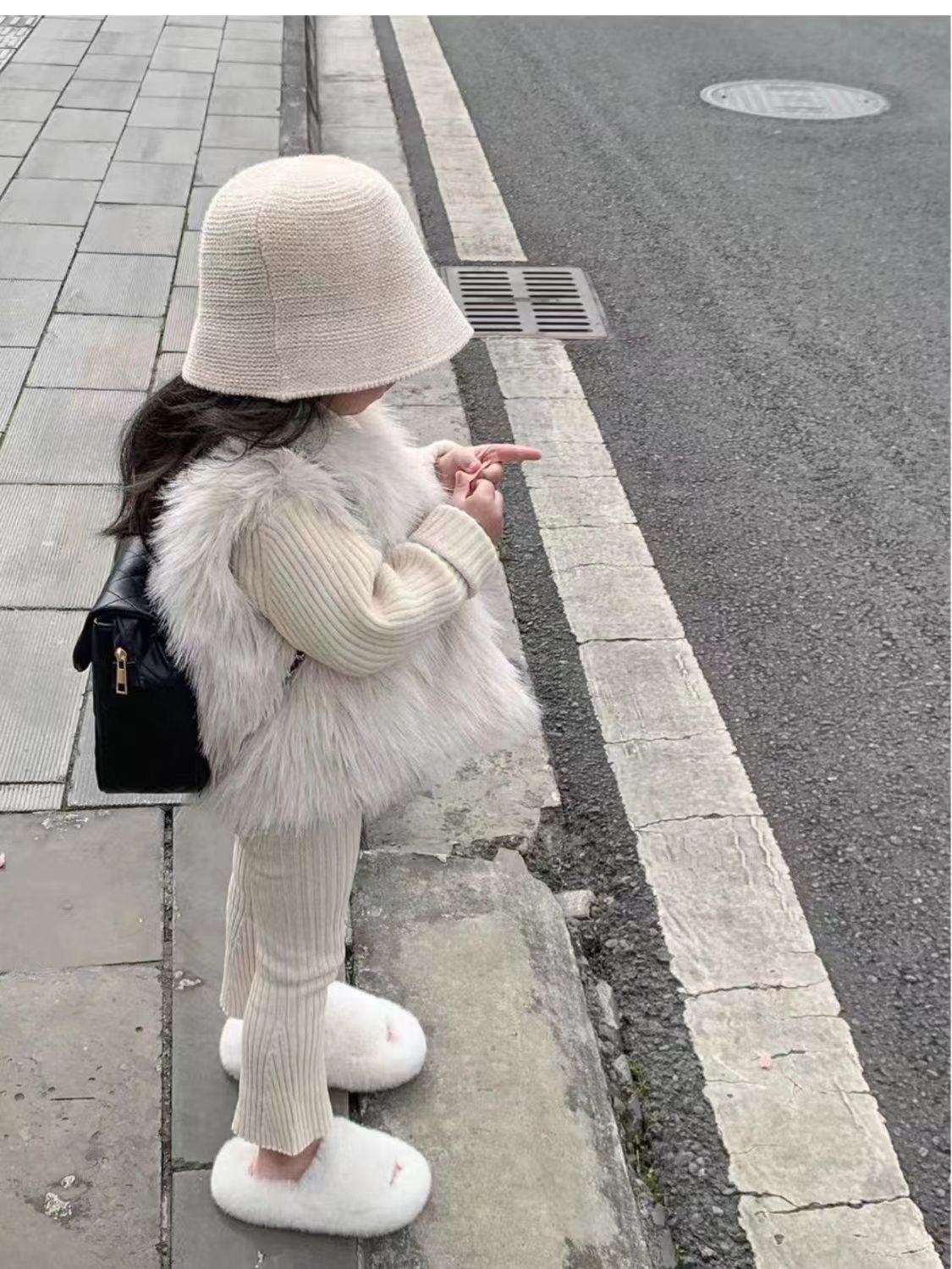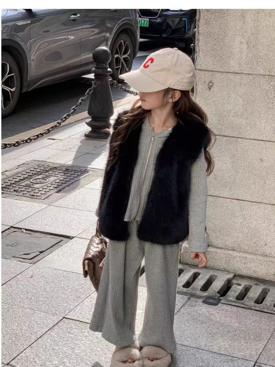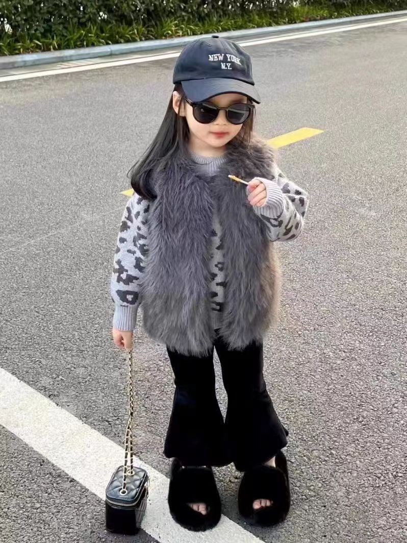 어린이용 인조 모피 조끼 신상품 2025 가을 겨울 한국 스타일 남녀 아기 다용도 패셔너블 모피 조끼 외출용스토어 가기