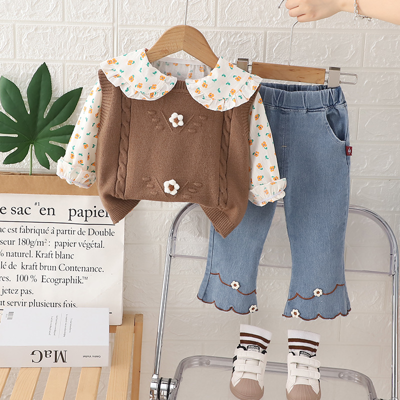 아동복 가을 아동복 3 차원 작은 꽃 소녀 세트 어린이 봄 가을 아동복 한국 어린이 세트