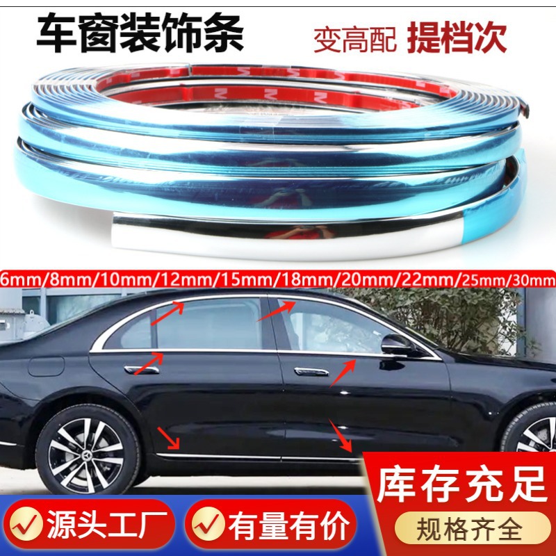 자동차 장식 스트립 바디 밝은 스트립 자동차 창 범용 전기 도금 밝은 스트립 범퍼 안티 스크래치 크롬 충돌 방지 스트립 도어 사이드 스트립