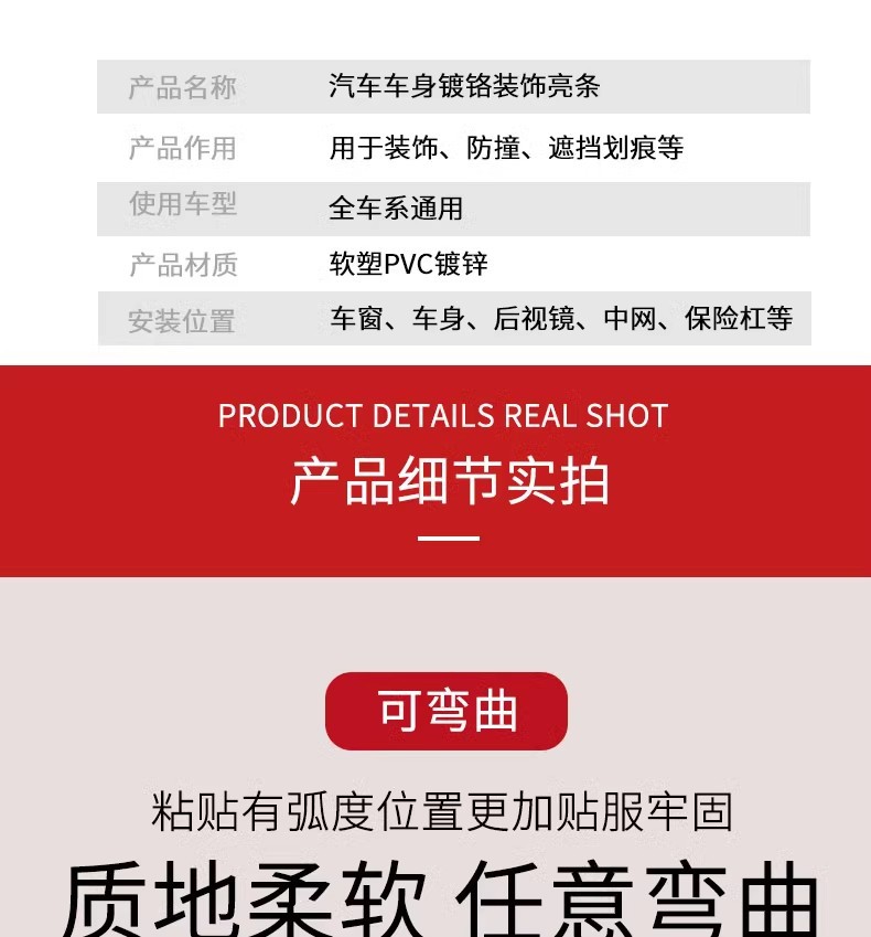 【材质】软塑PVC镀锌塑料电镀车窗后视镜门边保险杠车身车门装饰条防撞防护条