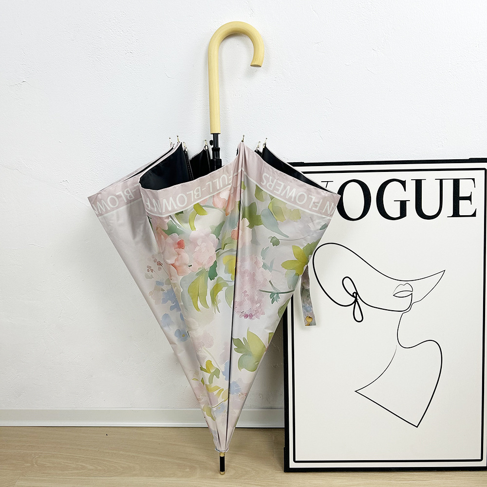 고급 색상-민감한 블랙 접착제 긴 손잡이 스트레이트 우산 맑고 비 이중 사용 태양 방지 자외선 차양 방풍 우산 여성용