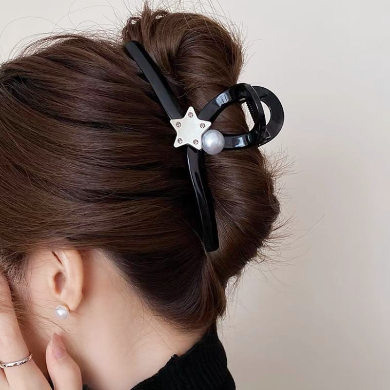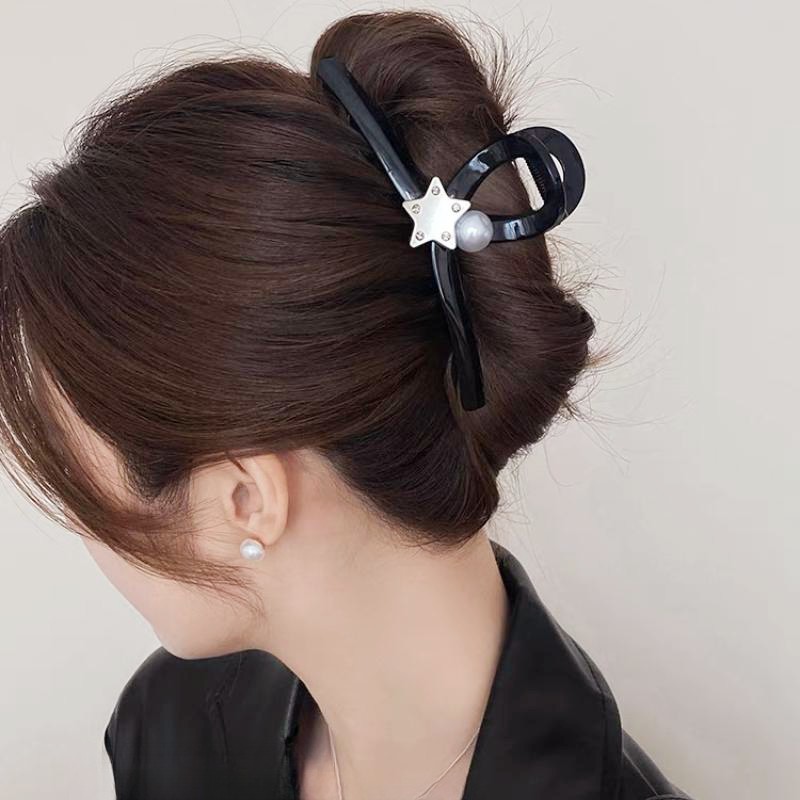 여성을위한 새로운 틈새 편지 오각형 스타 진주 상어 클립 헤어 클립 유럽과 미국의 패션 뒤 머리 잡아 헤어 액세서리스토어 가기