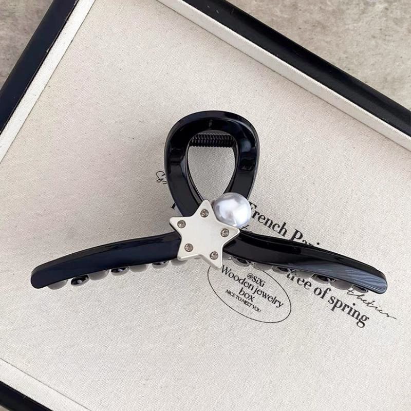 新款小众字母五角星星珍珠鲨鱼夹发夹 欧美时尚后脑勺抓夹发饰女
